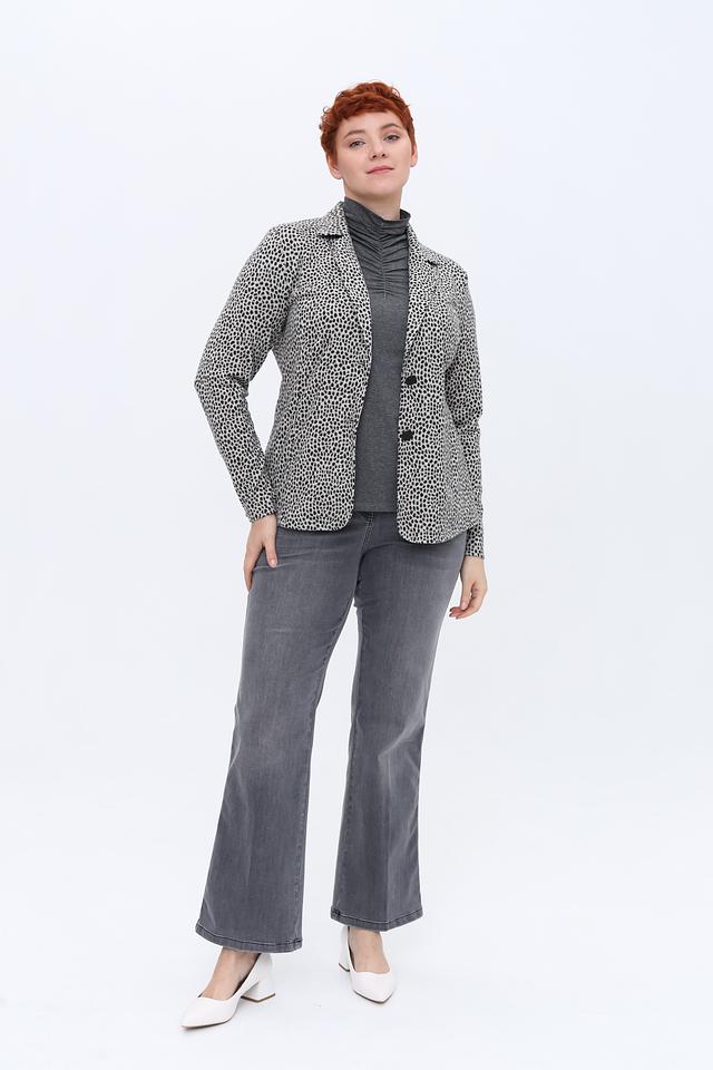 Модель имеет классический крой с лацканами и застежкой на пуговицы. Длинные рукава и удобная посадка обеспечивают комфорт в носке. Жакет прекрасно сочетается с джинсами, брюками и юбками, позволяя создавать разнообразные образы.