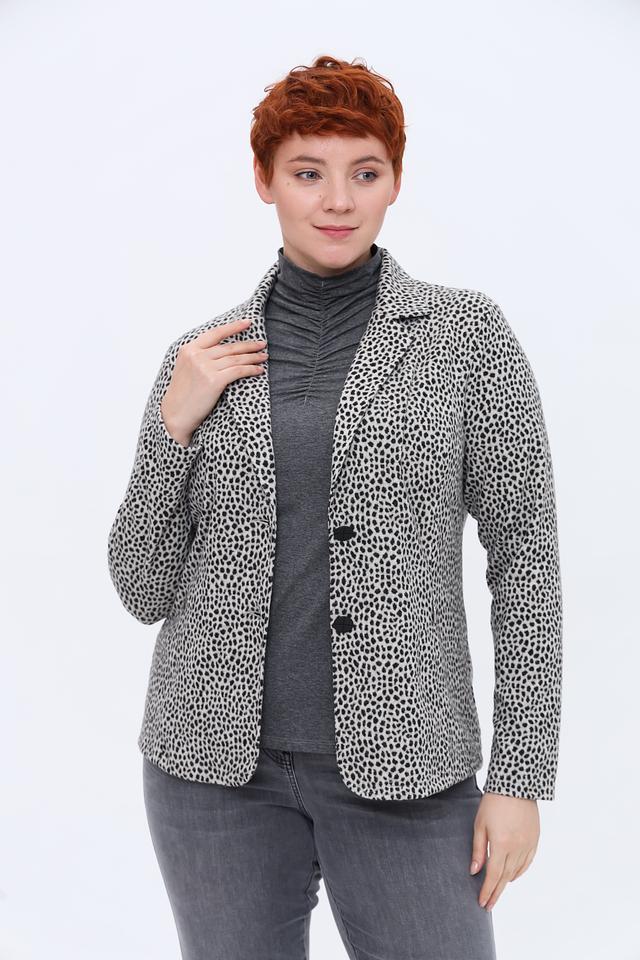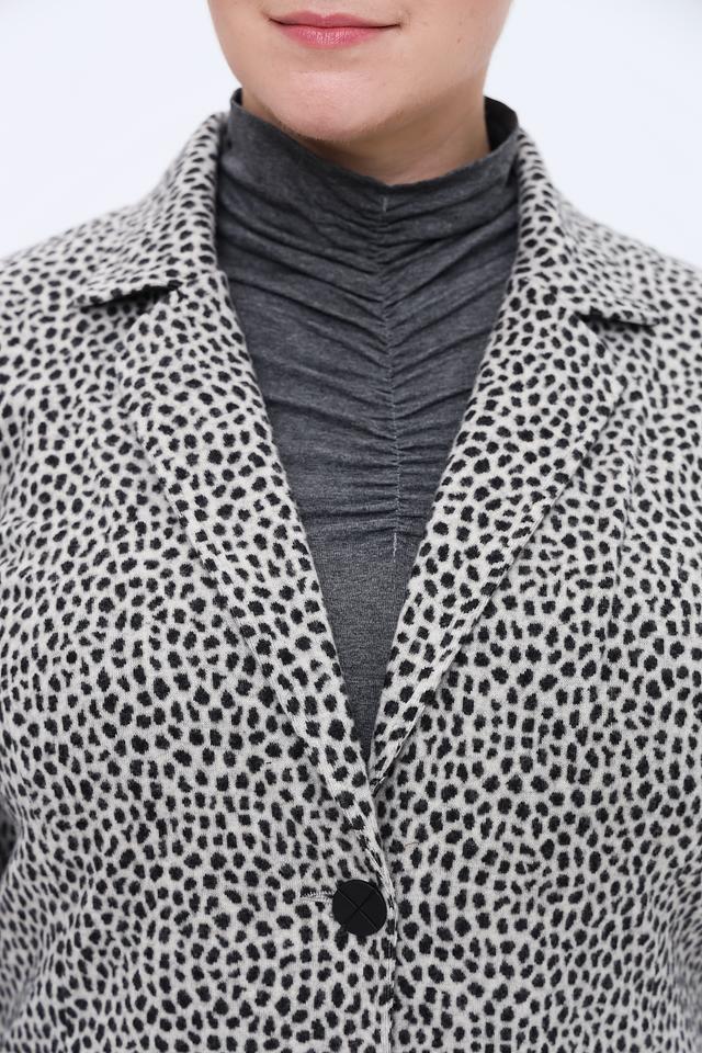 Этот жакет от Frank Walder – отличный выбор для тех, кто ценит комфорт и стиль. Жакет выполнен в бежевом цвете и украшен эффектным пятнистым принтом, который придает ему особую изысканность.