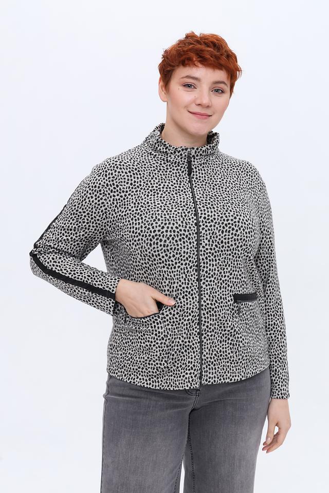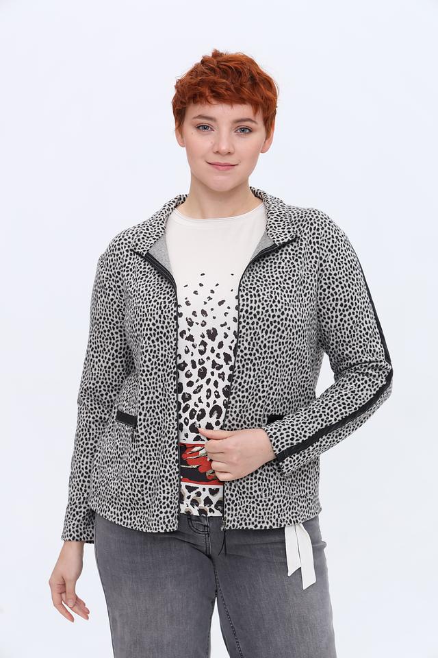 Жакет Frank Walder серого цвета с оригинальным леопардовым принтом станет стильным дополнением к вашему гардеробу. Модель на молнии с боковыми карманами и контрастными полосами на рукавах. Состав: полиэстер 60%, вискоза 34%, эластан 6%