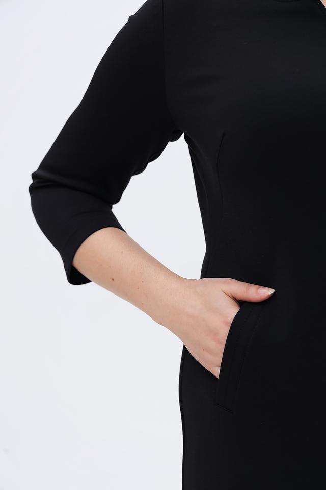 Рукава длиной 3/4 делают это платье подходящим для ношения в течение всего года. Боковые карманы добавляют практичности и удобства. Платье изготовлено из высококачественного полиэстера с добавлением эластана, что обеспечивает комфорт при носке и отличную посадку по фигуре.