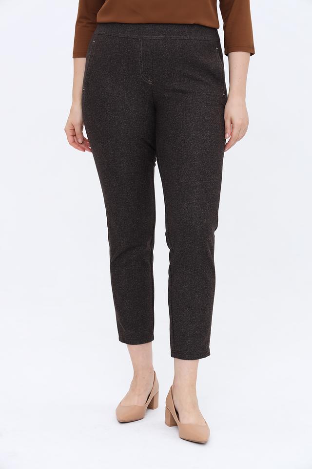 Состав ткани: 68% полиэстер, 26% вискоза, 6% эластан. Такой состав обеспечивает приятные тактильные ощущения, хорошую износостойкость и лёгкость в уходе. Брюки отлично подойдут для создания повседневных образов.
