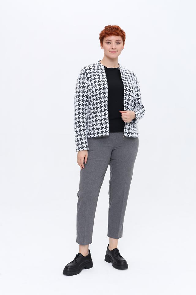 Жакет имеет удобную застежку-молнию, которая позволяет быстро и легко надевать и снимать его. Стандартная длина жакета делает его подходящим для создания как повседневных, так и более формальных образов.