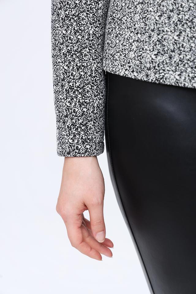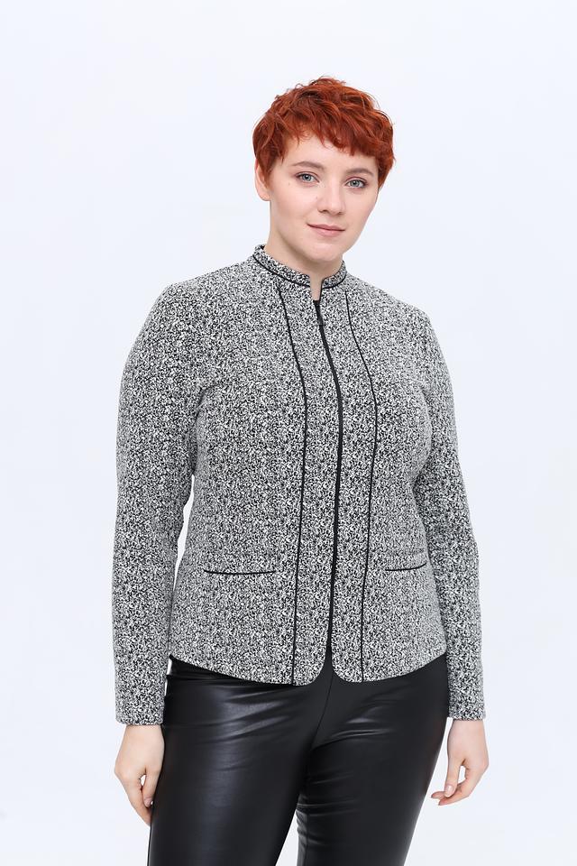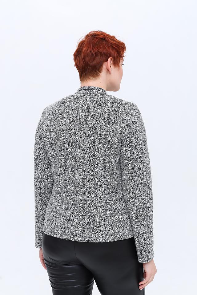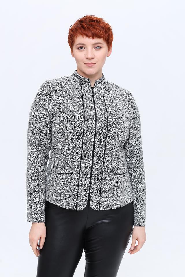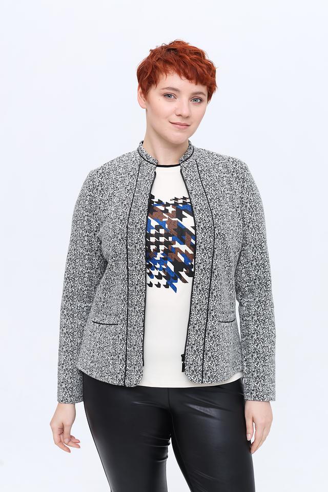 Состав ткани: 80% полиэстер, 18% вискоза, 2% эластан. Этот состав обеспечивает комфорт в носке и легкость ухода за изделием. Жакет идеально сочетается с брюками, юбками и платьями, позволяя создавать как деловые, так и повседневные образы.
