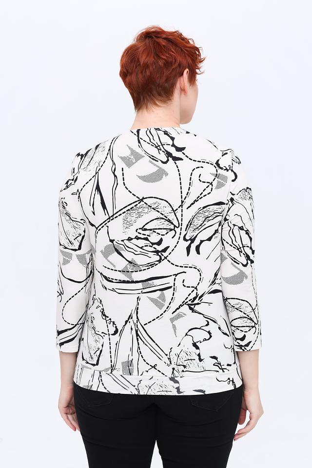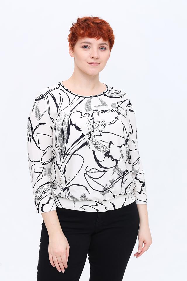 Модель имеет округлый вырез горловины и рукава длиной 3/4, что делает её универсальной для различных образов. Блуза выполнена из высококачественной вискозы с добавлением эластана, благодаря чему она приятна к телу, хорошо драпируется и не мнется.
