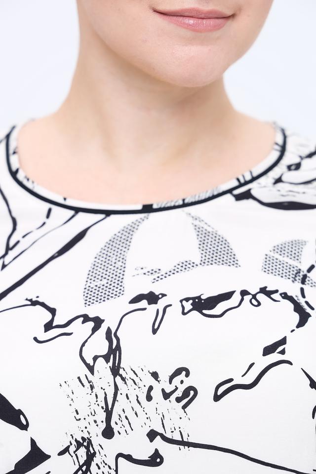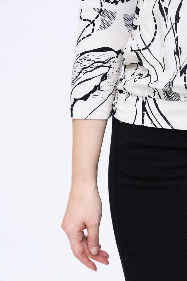 Блуза Frank Walder белого цвета с оригинальным абстрактным принтом. Модель выполнена из мягкой вискозы с добавлением эластана, что обеспечивает комфорт и хорошую посадку по фигуре. Состав: вискоза 96%, эластан 4%