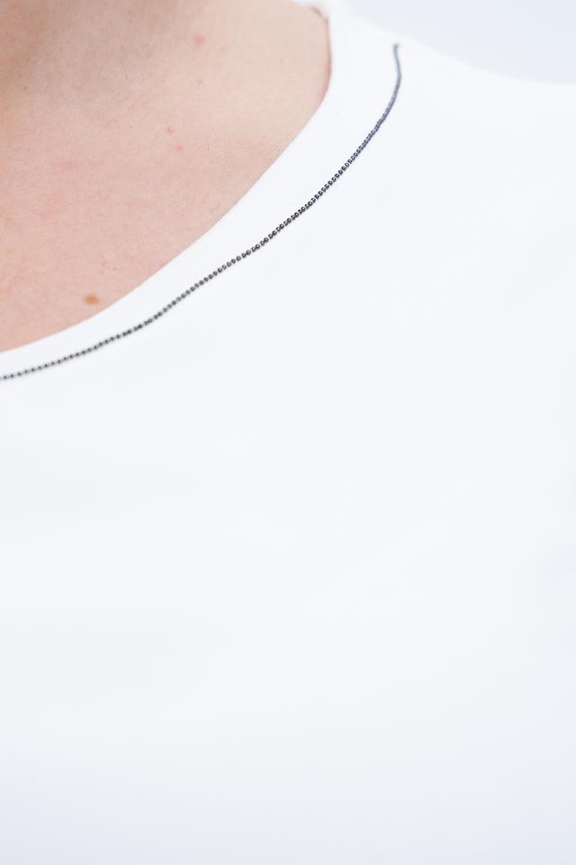 Лонгслив имеет классический крой и круглый вырез горловины, который аккуратно отделан контрастной тесьмой. Благодаря своему минималистичному дизайну, он легко сочетается с различными элементами одежды – от джинсов и брюк до юбок и шорт.
