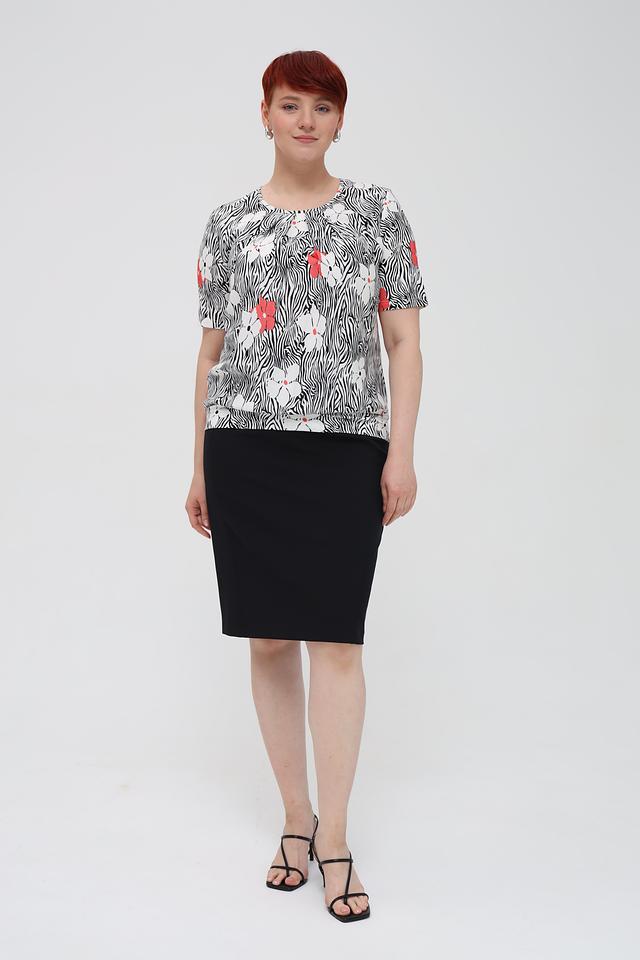 Юбка имеет прямую посадку по фигуре, подчеркивающую достоинства силуэта. Благодаря сочетанию полиэстера и эластана, юбка хорошо держит форму, не мнется и обеспечивает комфорт в носке.