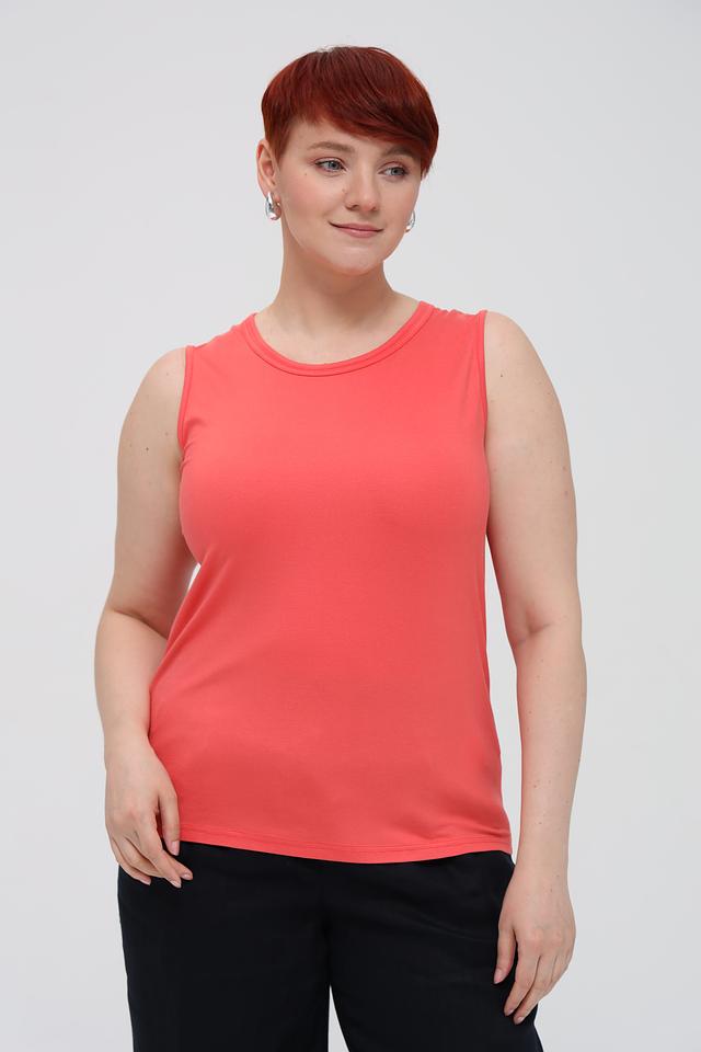 Топ Frank Walder кораллового цвета — это базовая модель без рукавов с круглым вырезом. Изготовлен из мягкой вискозы с добавлением эластана для комфорта и хорошей посадки по фигуре. Идеально подходит для создания повседневных образов. Состав: вискоза 93%, эластан 7%