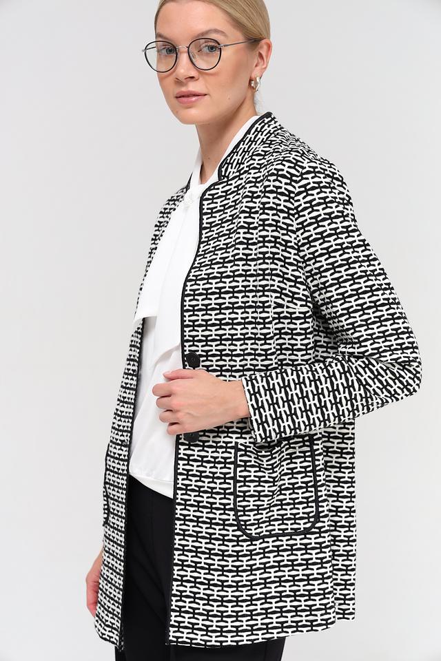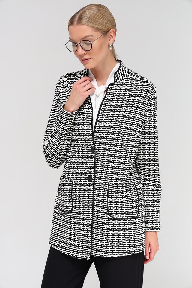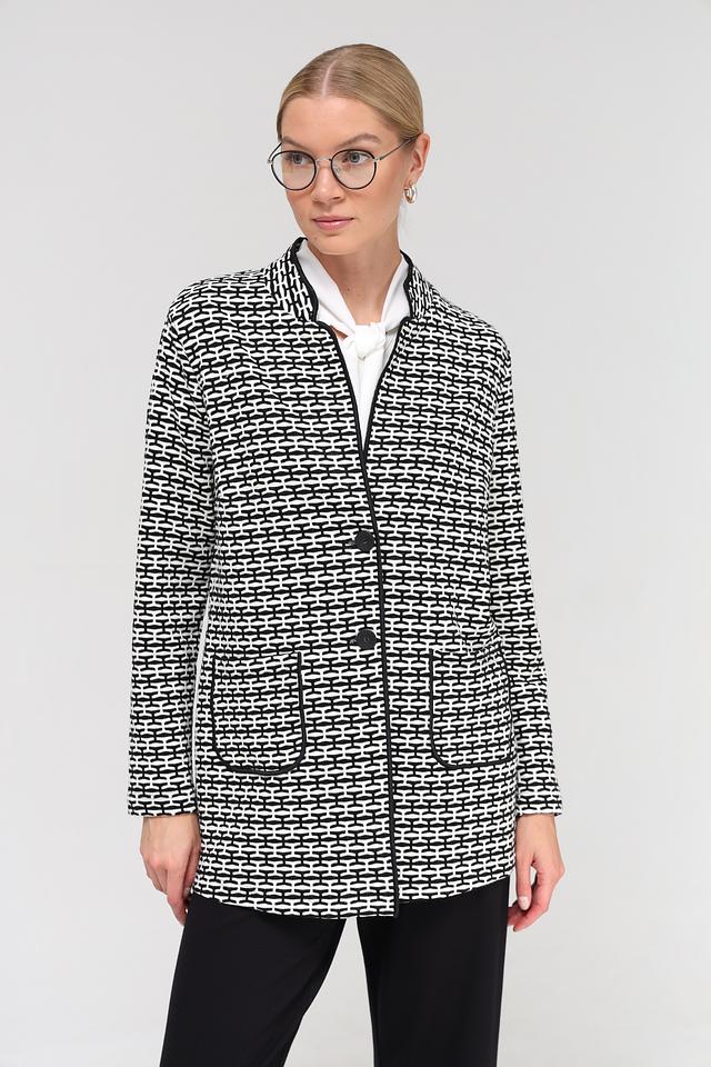 Этот жакет от Frank Walder станет отличным дополнением к вашему гардеробу. Модель выполнена в классическом чёрно-белом цвете и имеет оригинальный геометрический рисунок в виде клетки.