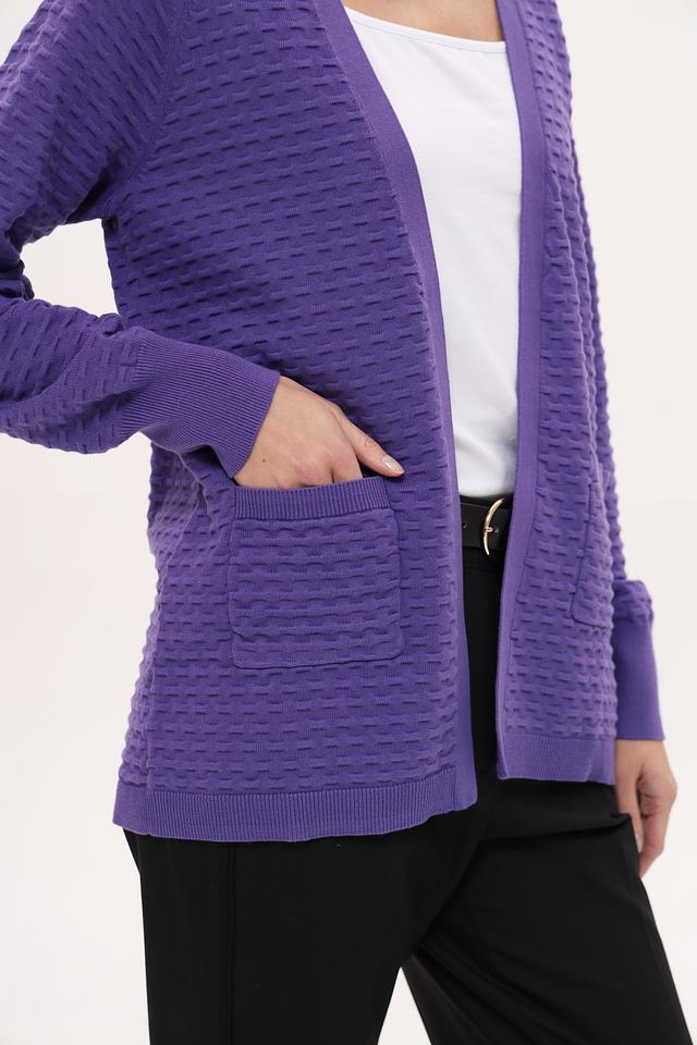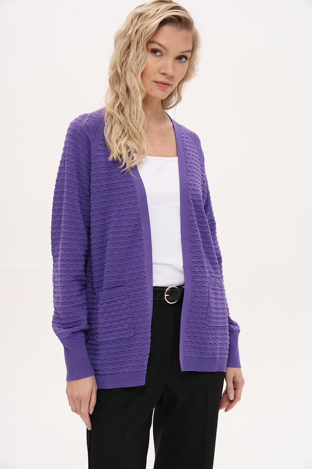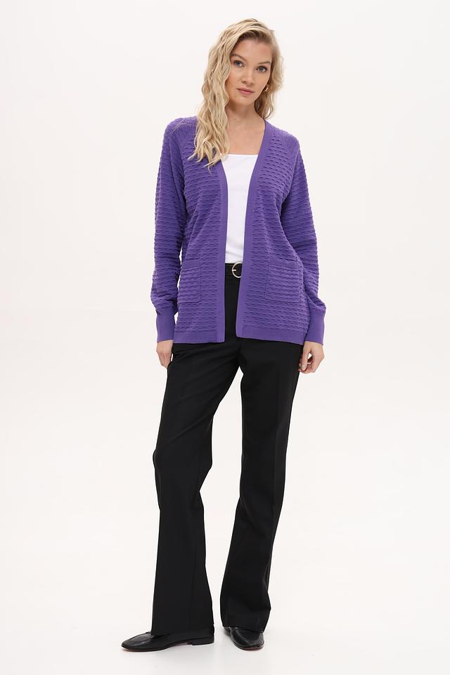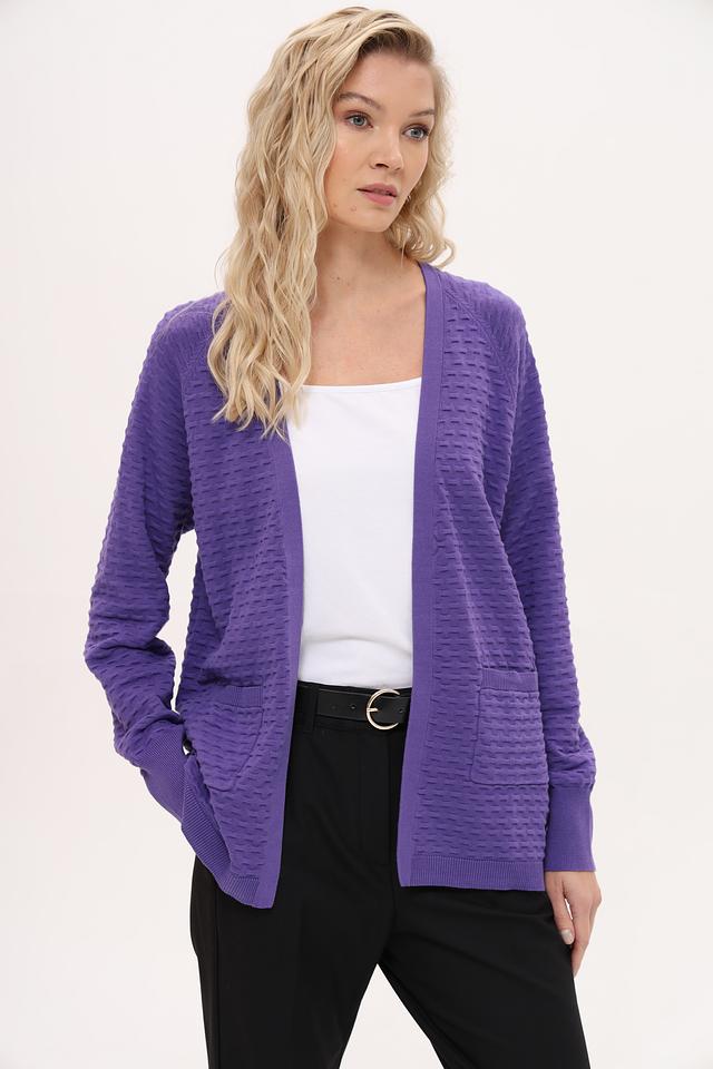 Лиловый жакет Frank Walder из 100% хлопка с текстурной вязкой и карманами. Удобный и стильный выбор для создания повседневных образов. Состав: хлопок 100%
