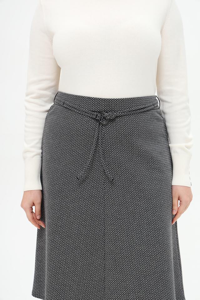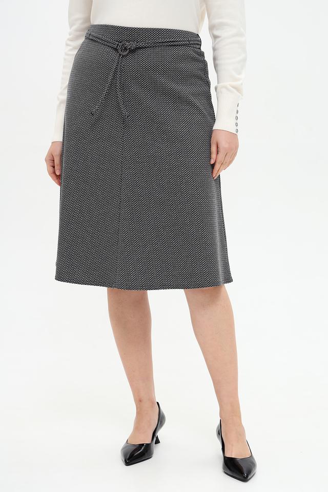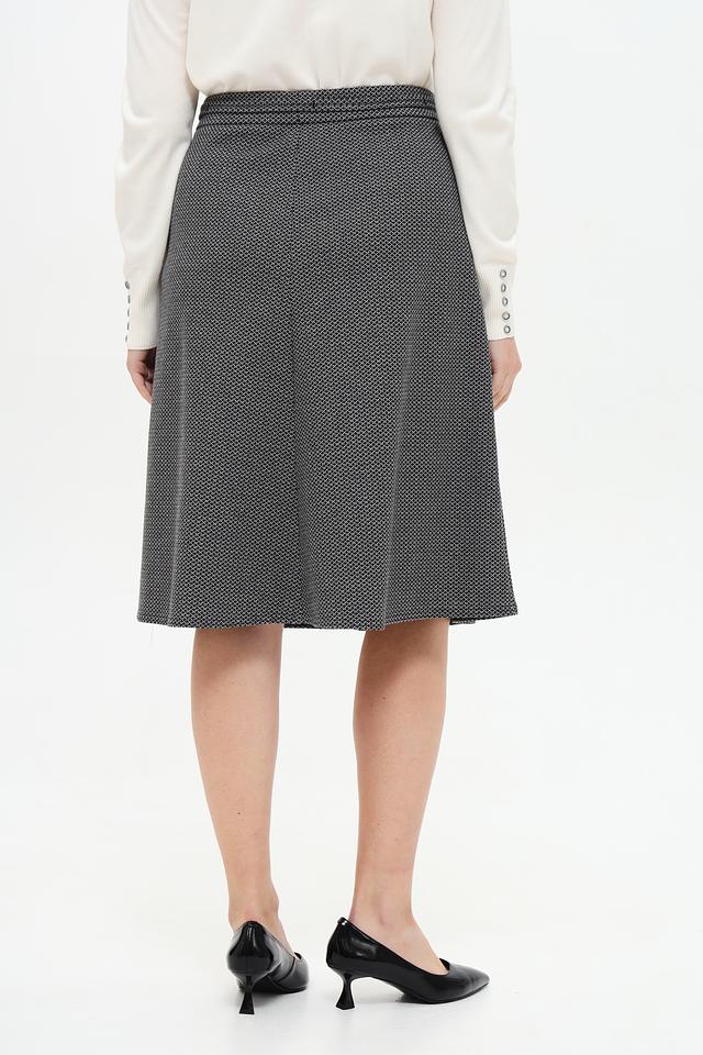 Эта юбка от Frank Walder станет отличным дополнением к вашему гардеробу. Модель выполнена в сером цвете с мелким геометрическим принтом, который придает ей изысканность.