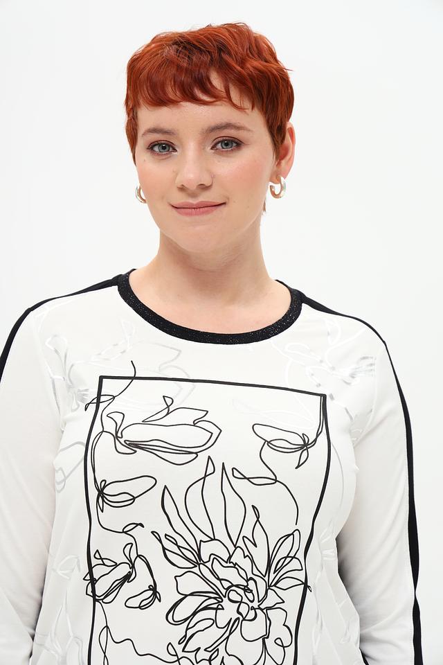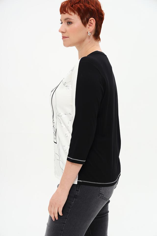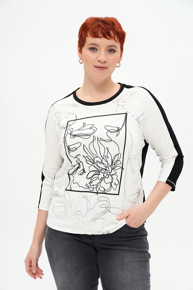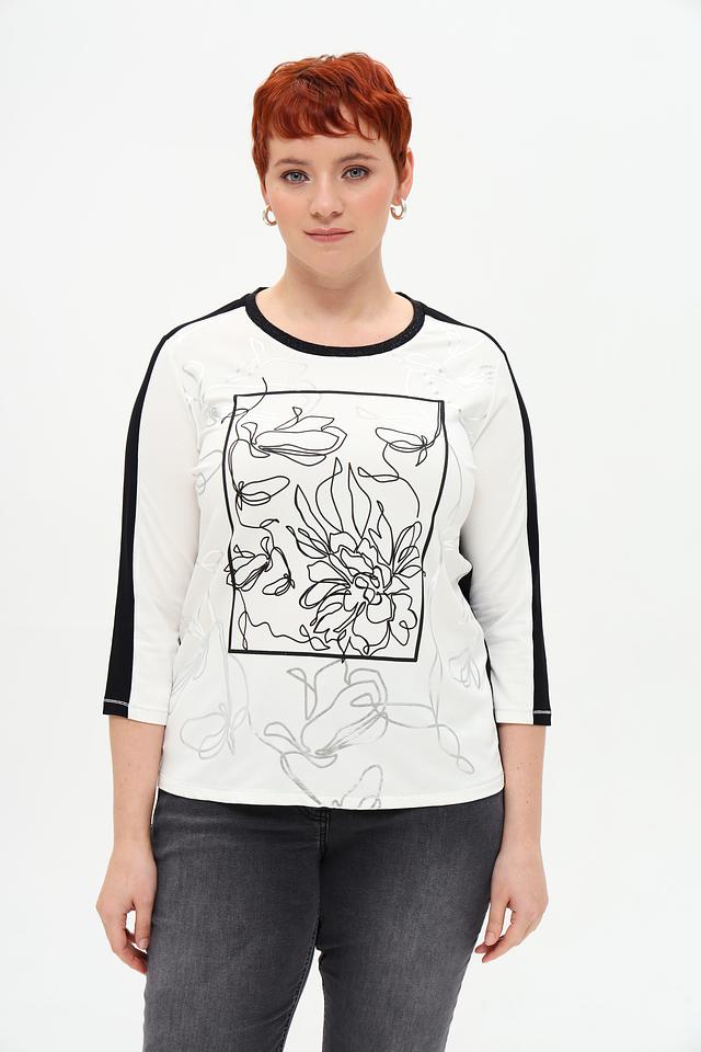 Женская футболка Frank Walder белого цвета с оригинальным цветочным принтом и контрастными черными рукавами. Изготовлена из мягкой вискозы с добавлением эластана для комфорта и свободы движений. Состав: вискоза 95%, эластан 5%