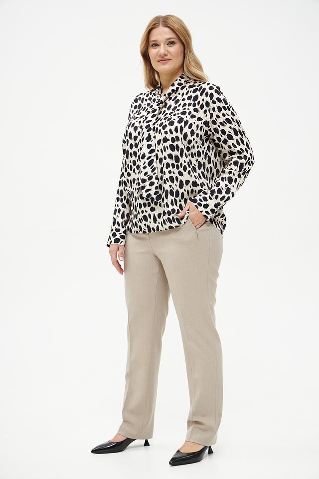 Блуза имеет классический крой с длинными рукавами и отложным воротником. Застежка на пуговицы. Изготовлена из высококачественной 100% вискозы, что делает ее приятной к телу и обеспечивает комфорт при ношении.
