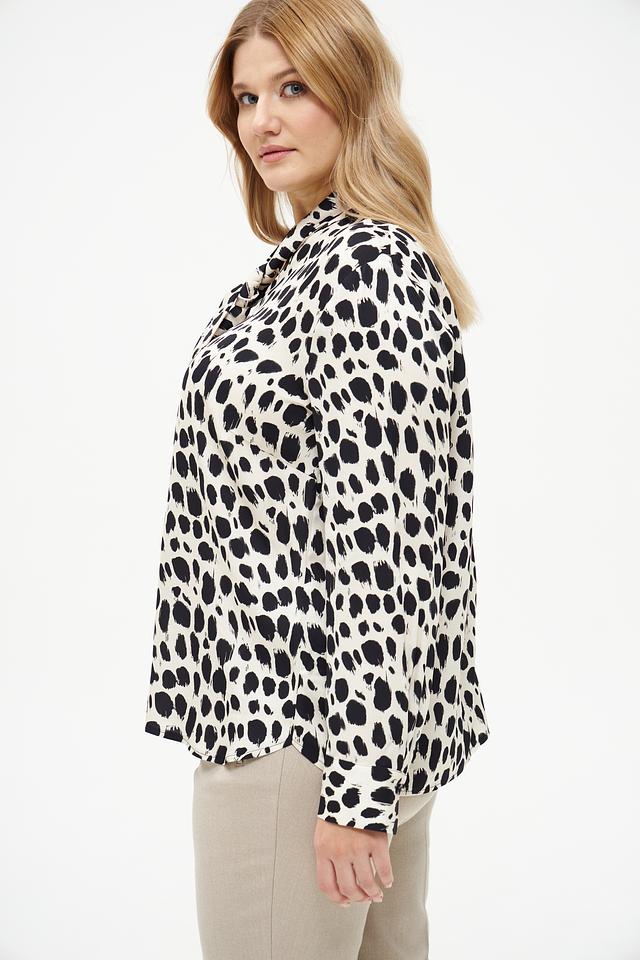 Эта блуза от Frank Walder станет прекрасным дополнением к вашему гардеробу. Выполнена в белом цвете с эффектным чёрным принтом, напоминающим леопардовый окрас.