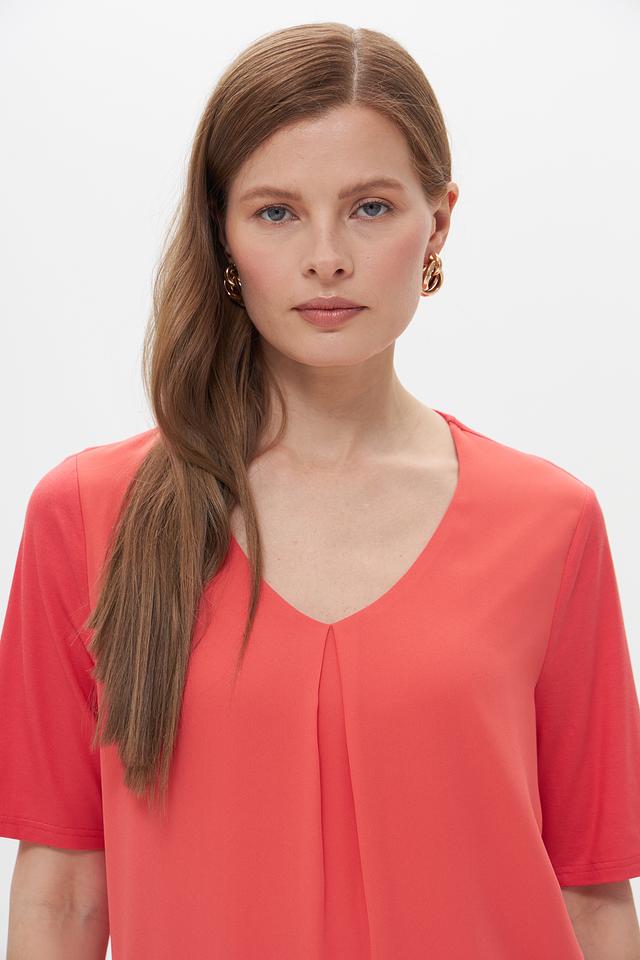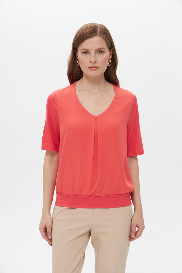 Блуза Frank Walder красная с V-образным вырезом и сборкой