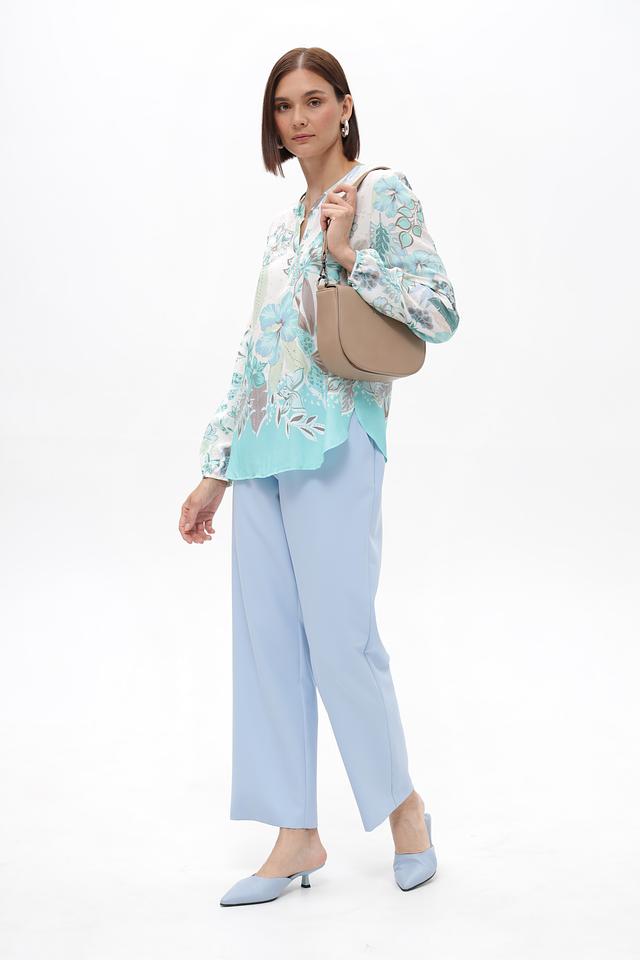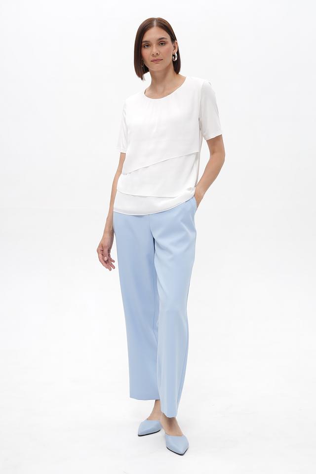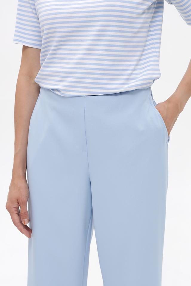 Женские брюки Frank Walder нежного голубого цвета, выполнены из полиэстера с добавлением эластана. Модель с эластичным поясом и широкими штанинами обеспечит комфорт и свободу движений. Состав: полиэстер 88%, эластан 12%