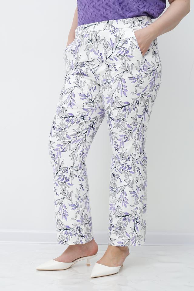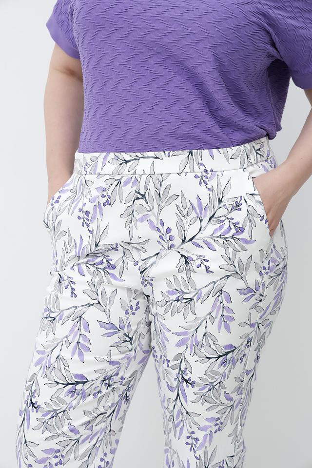 Женские брюки Frank Walder белого цвета с оригинальным цветочным принтом. Изготовлены из хлопка с добавлением эластана для комфорта и свободы движений. Состав: хлопок 97%, эластан 3%