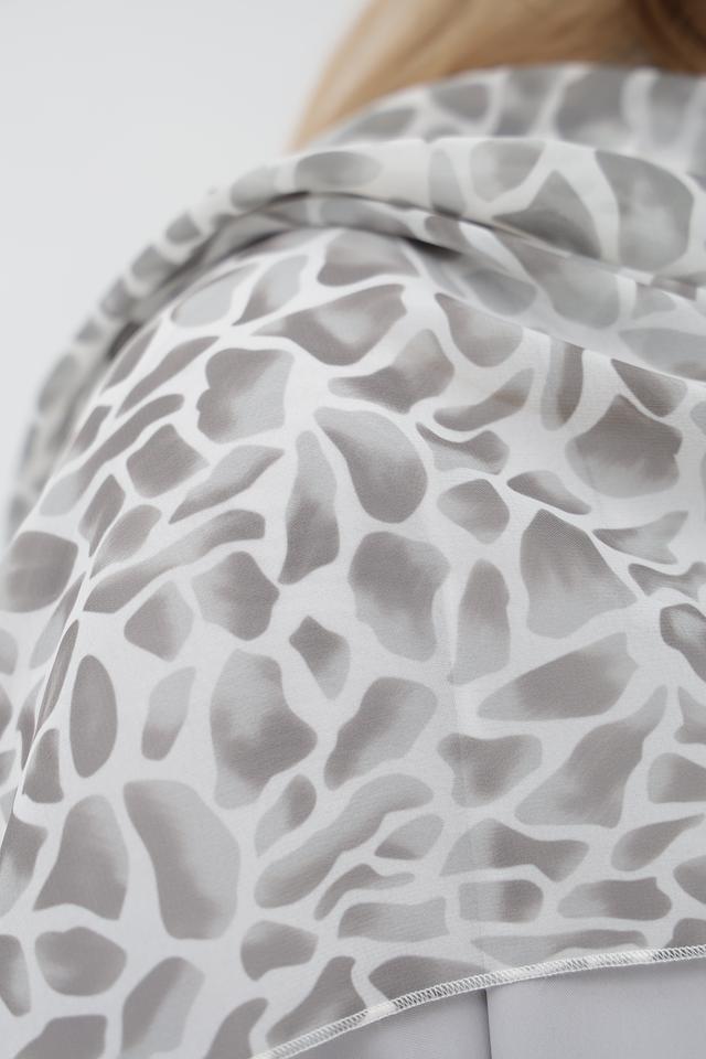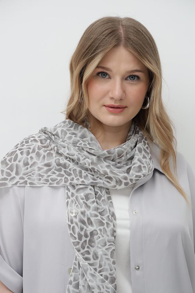 Элегантный шарф от Frank Walder – прекрасное дополнение к любому образу. Шарф выполнен в светло-серых тонах с оригинальным абстрактным леопардовым принтом, который придаёт аксессуару особый шарм.