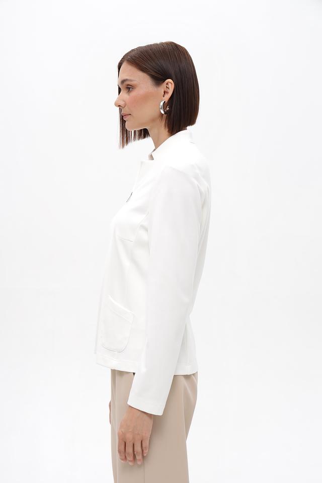 Жакет имеет приталенный силуэт, который подчеркивает фигуру. Застежка на молнию обеспечивает удобство и практичность. Воротник-стойка добавляет модели изысканности.