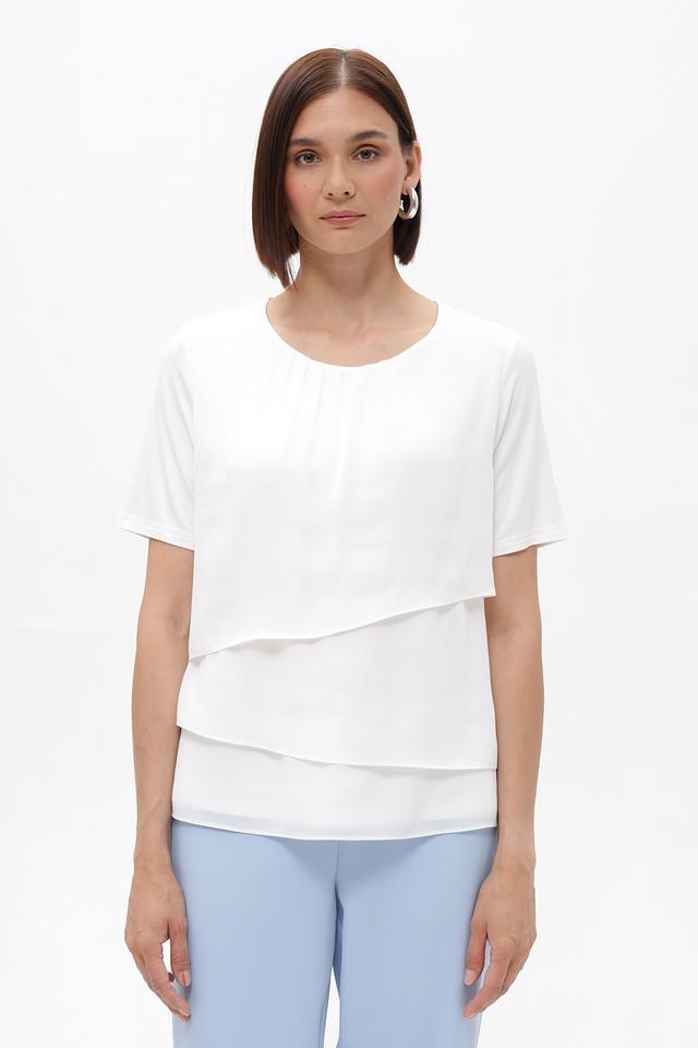 Эта блузка от Frank Walder станет прекрасным дополнением к вашему гардеробу. Выполненная в белом цвете, она отличается оригинальным дизайном с многослойным верхом, который придает образу легкость и воздушность.