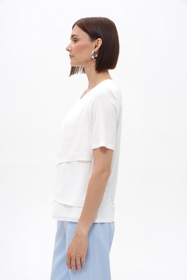 Белая блузка Frank Walder с многослойным верхом – элегантный выбор для создания стильного образа. Модель выполнена из вискозы с добавлением эластана, что обеспечивает комфорт и приятные ощущения при носке. Блузка идеально подойдет для работы или особых случаев. Состав: вискоза 93%, эластан 7%