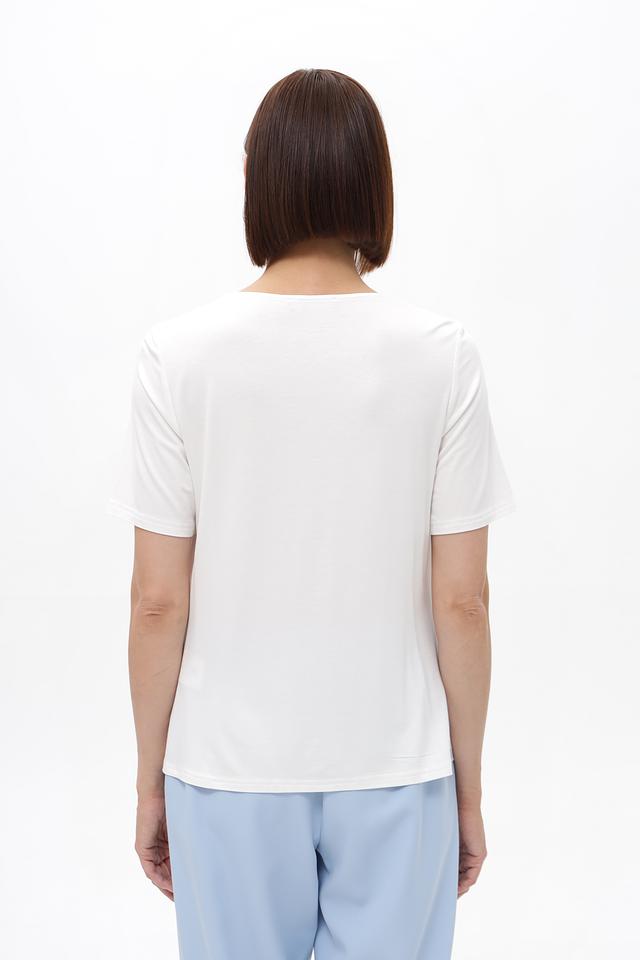 Блузка имеет короткие рукава и круглый вырез горловины. Свободный крой обеспечивает комфортную посадку по фигуре. Изготовлена из высококачественной вискозы с добавлением эластана, что делает ее приятной к телу и устойчивой к сминанию.