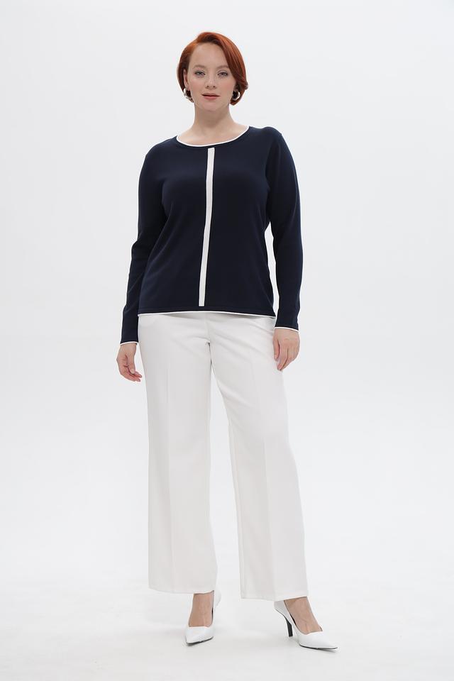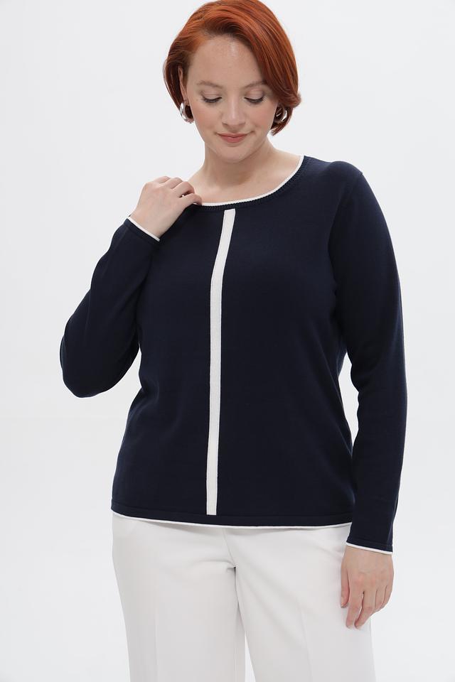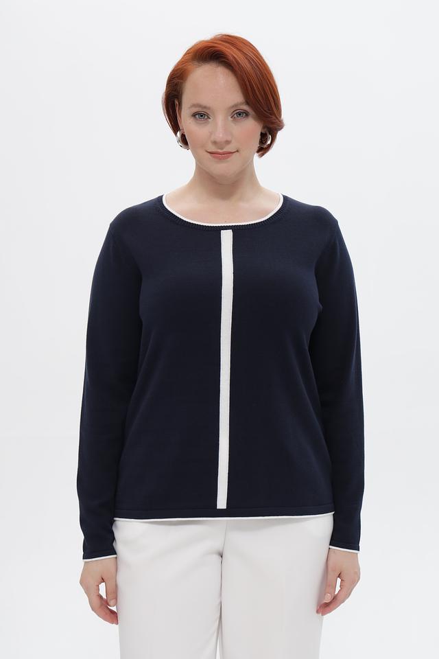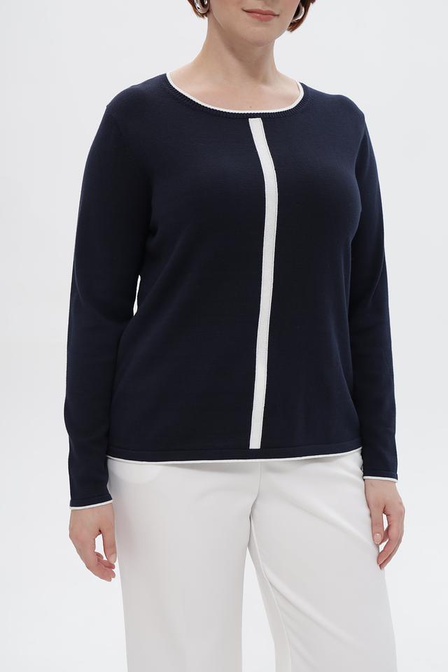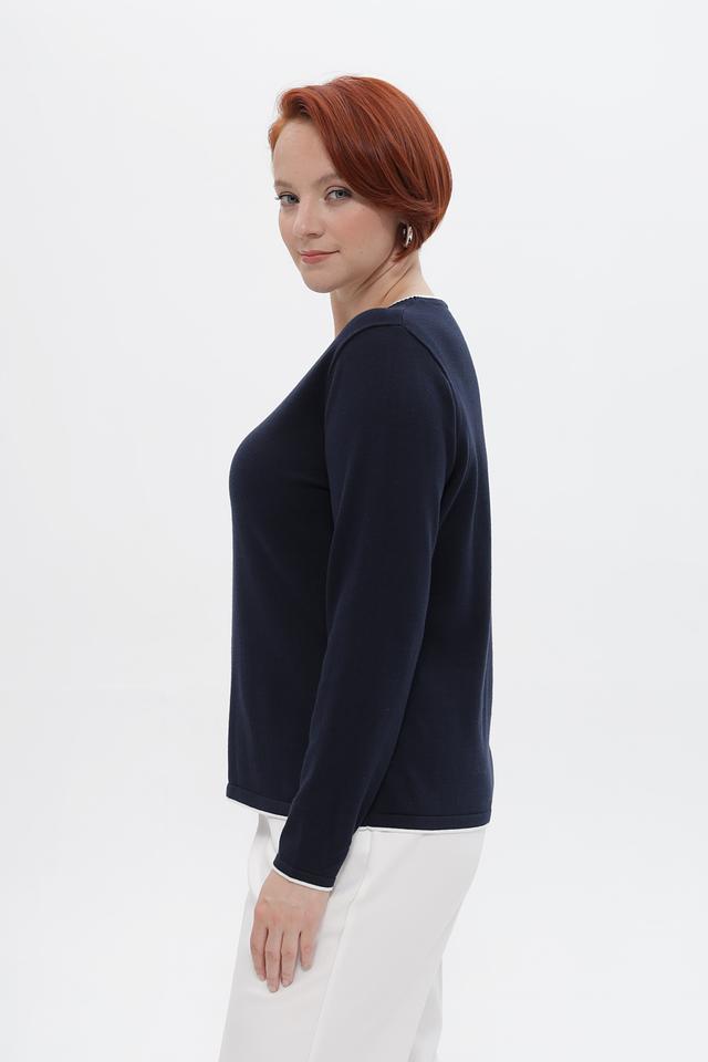 Модель тёмно-синего цвета имеет лаконичный крой с длинными рукавами и округлым вырезом горловины.