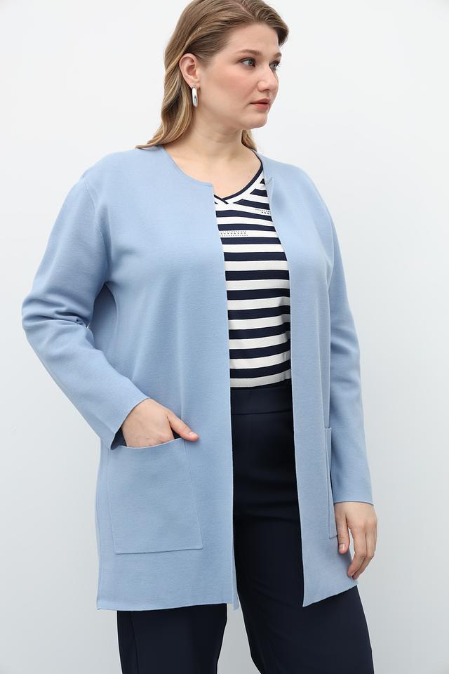 Дизайн жакета лаконичен и универсален: открытый силуэт, V-образный вырез горловины и накладные карманы. Длинные рукава делают модель подходящей для прохладной погоды. Жакет легко сочетается с различными предметами гардероба, позволяя создавать разнообразные стильные образы.