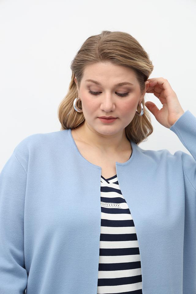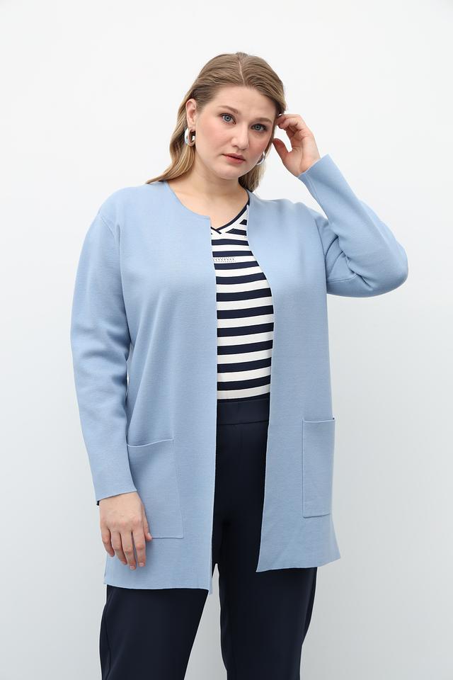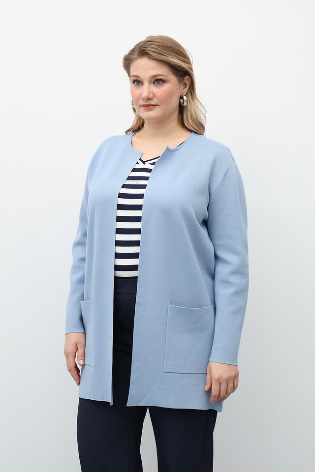 Голубой жакет от Frank Walder из вискозы с полиэстером. Модель с открытым силуэтом и накладными карманами. Комфортный и универсальный выбор для создания стильных образов. Состав: вискоза 72%, полиэстер 28%