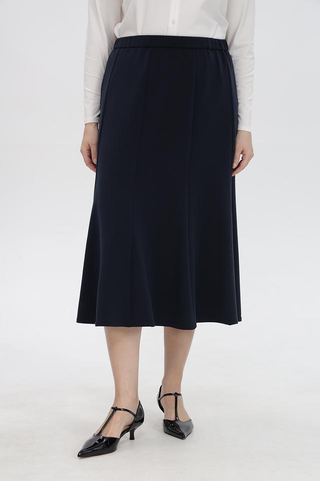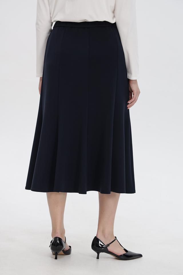 Юбка имеет длину миди и завышенную талию, что визуально удлиняет ноги и подчеркивает силуэт. Комфортный эластичный пояс обеспечивает удобную посадку по фигуре.