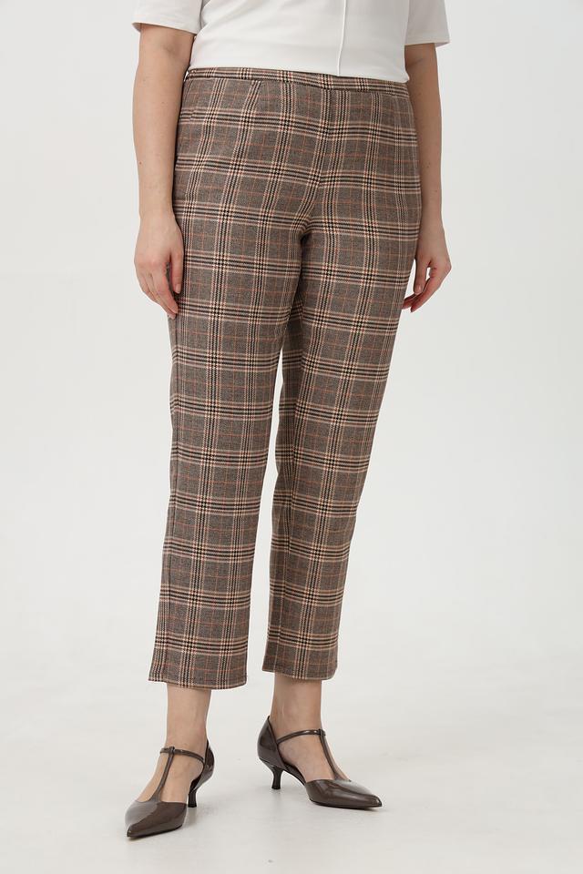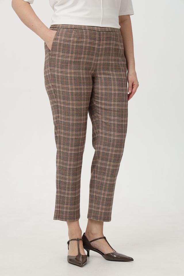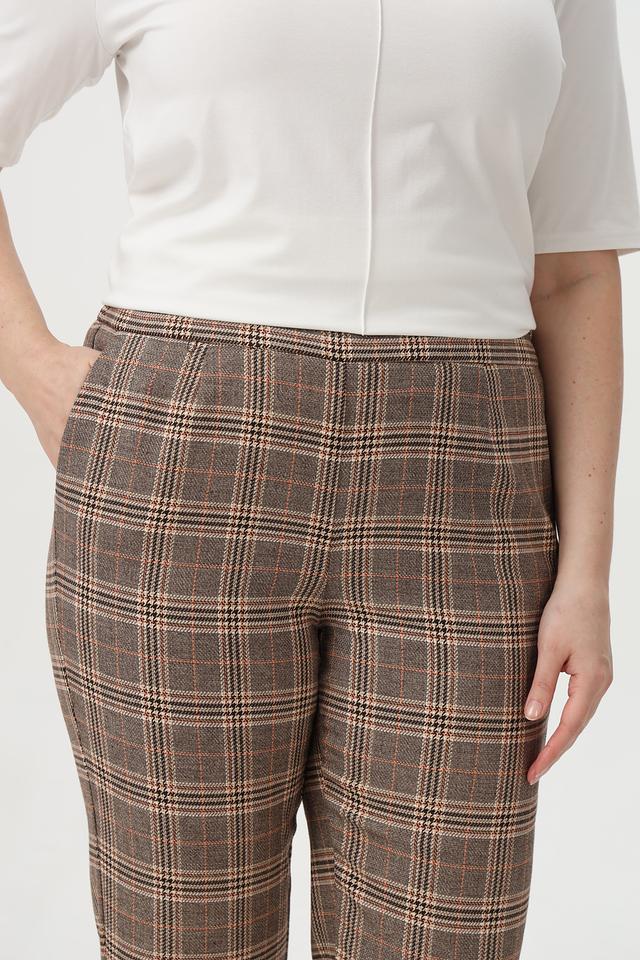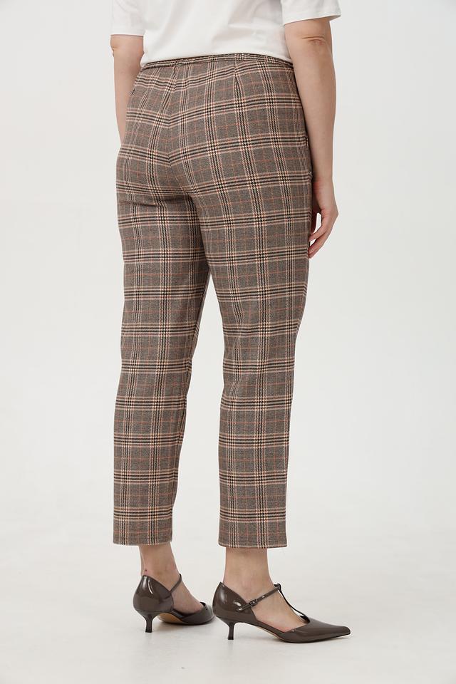 Женские брюки Frank Walder коричневого цвета в классическую клетку. Модель выполнена из сочетания полиэстера, вискозы и эластана, обеспечивающего комфорт в носке и хорошую посадку по фигуре. Состав: полиэстер 63%, вискоза 34%, эластан 3%