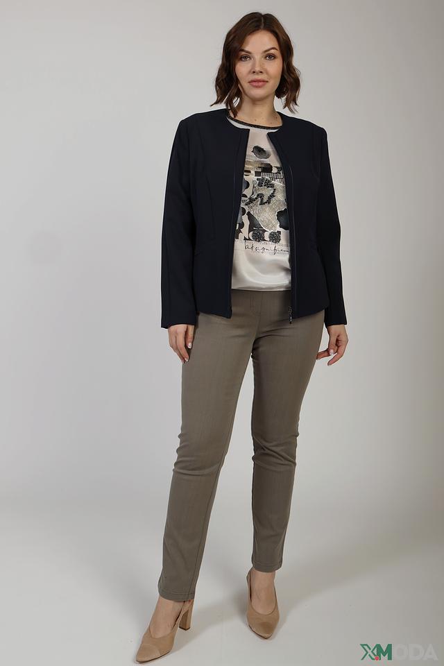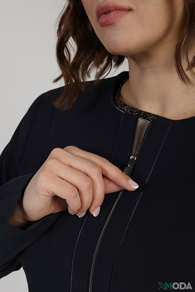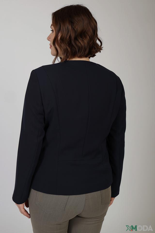 Жакет имеет застежку на молнию, что придает ему современный вид. Приталенный силуэт подчеркивает фигуру, а длинные рукава делают его подходящим для прохладной погоды.