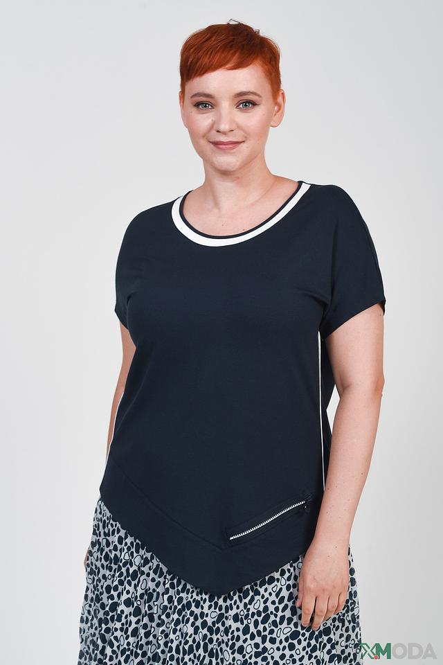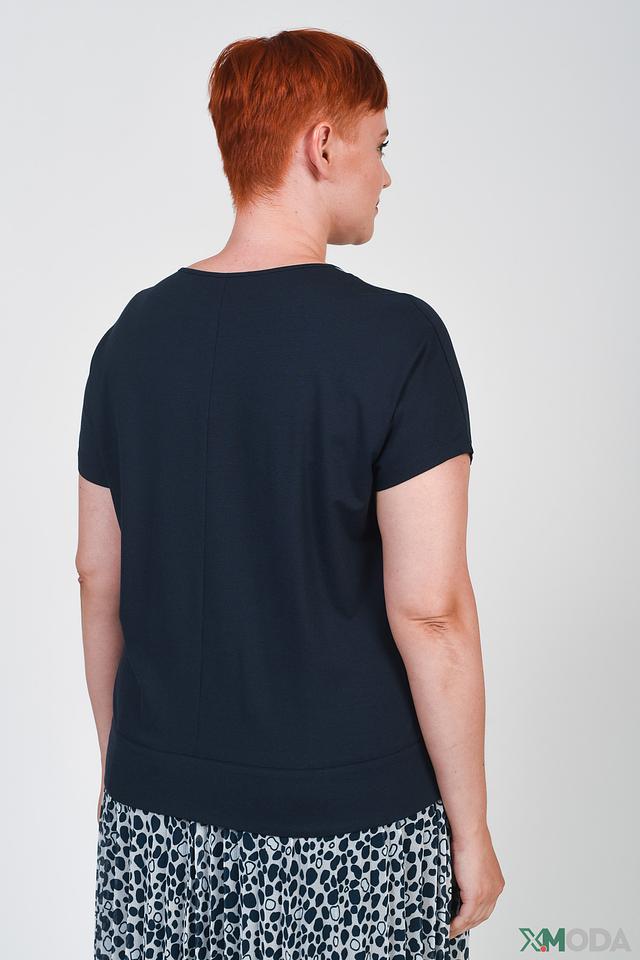 Женская футболка Frank Walder темно-синего цвета с короткими рукавами и контрастной белой отделкой на горловине и плечах. Модель выполнена из мягкой вискозы с добавлением эластана для комфорта и хорошей посадки. Состав: вискоза 93%, эластан 3%