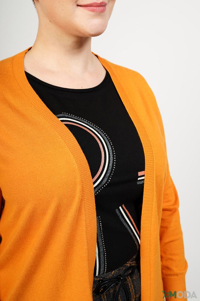 Жакет имеет прямой крой, длинные рукава и V-образный вырез. Отсутствие застежек делает его легким и удобным в носке. Боковые карманы добавляют функциональности. Жакет идеально сочетается с юбками, брюками и платьями, позволяя создавать разнообразные образы.