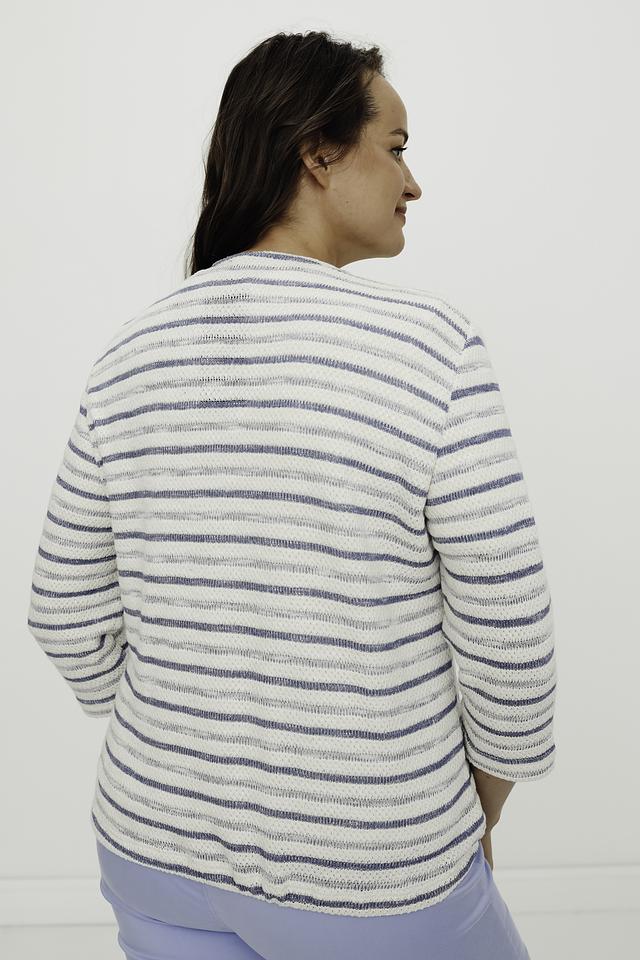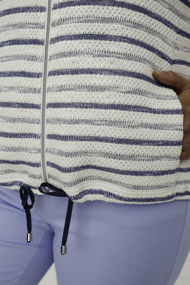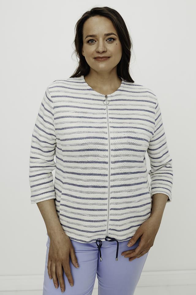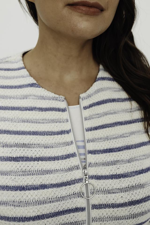Жакет Frank Walder белого цвета в синюю полоску – стильная и удобная модель с застежкой-молнией. Жакет имеет ¾ рукава и свободный крой, идеально подходит для создания повседневных образов. Состав: вискоза 50%, полиэстер 25%, хлопок 25%