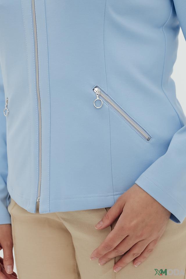 Голубой жакет Frank Walder – стильная и удобная модель на молнии. Жакет имеет приталенный силуэт и застегивается на металлическую молнию, дополненную двумя функциональными карманами на молниях. Состав: вискоза 68%, полиэстер 28%, эластан 4%