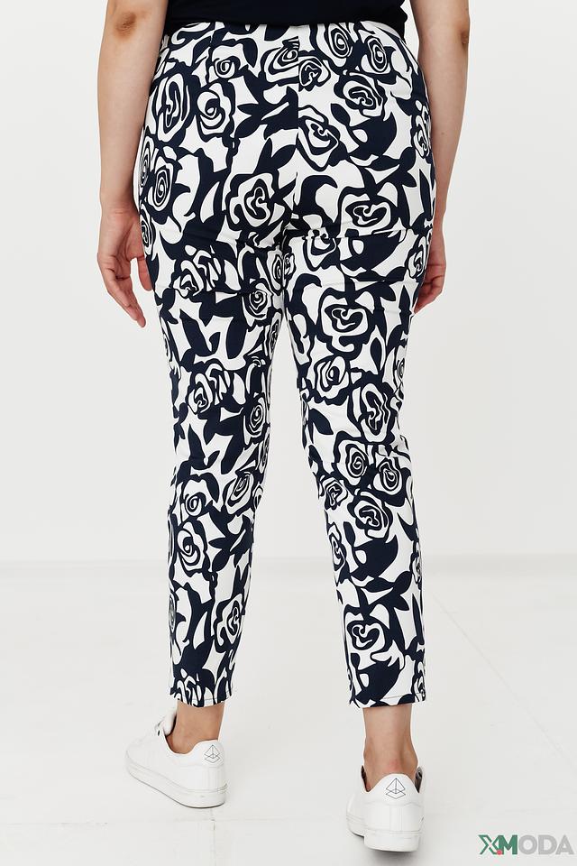 Особенностью модели является эффектный цветочный принт в сине-белой гамме, который добавляет брюкам изысканности и оригинальности. Прямой крой и укороченная длина делают их универсальными и подходящими для различных случаев.