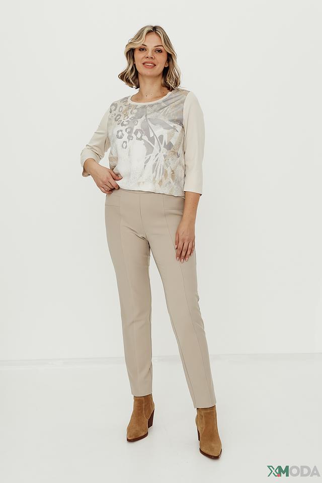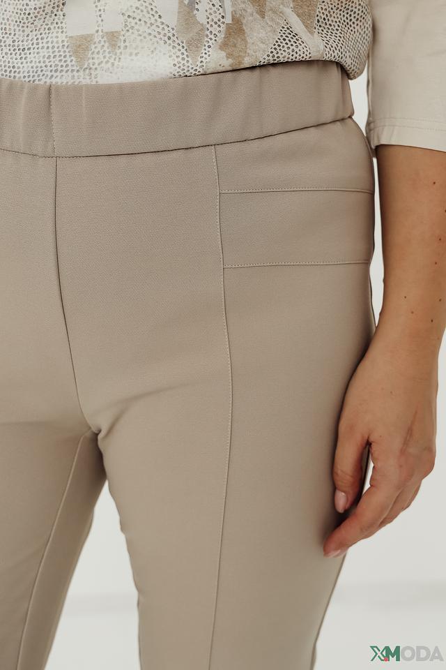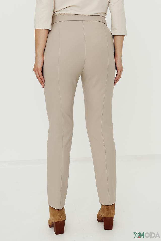Брюки имеют прямой крой, который подчеркивает достоинства фигуры и обеспечивает комфортную посадку. Эластичный пояс гарантирует удобство в носке, а вертикальные вытачки визуально вытягивают силуэт.