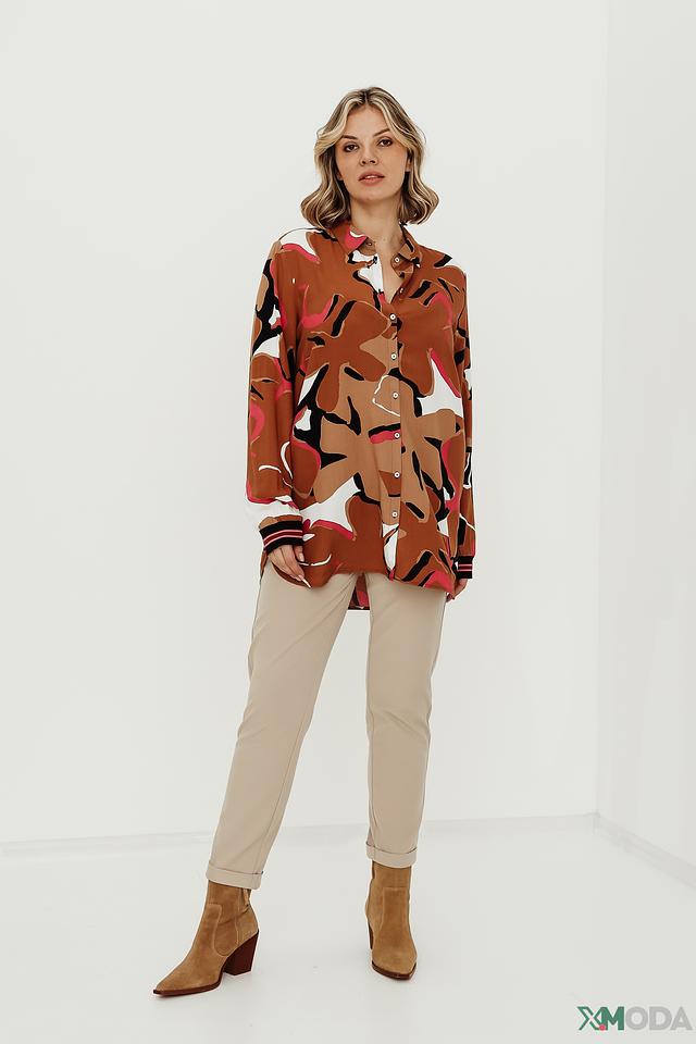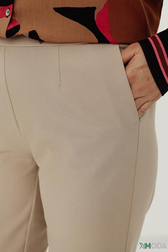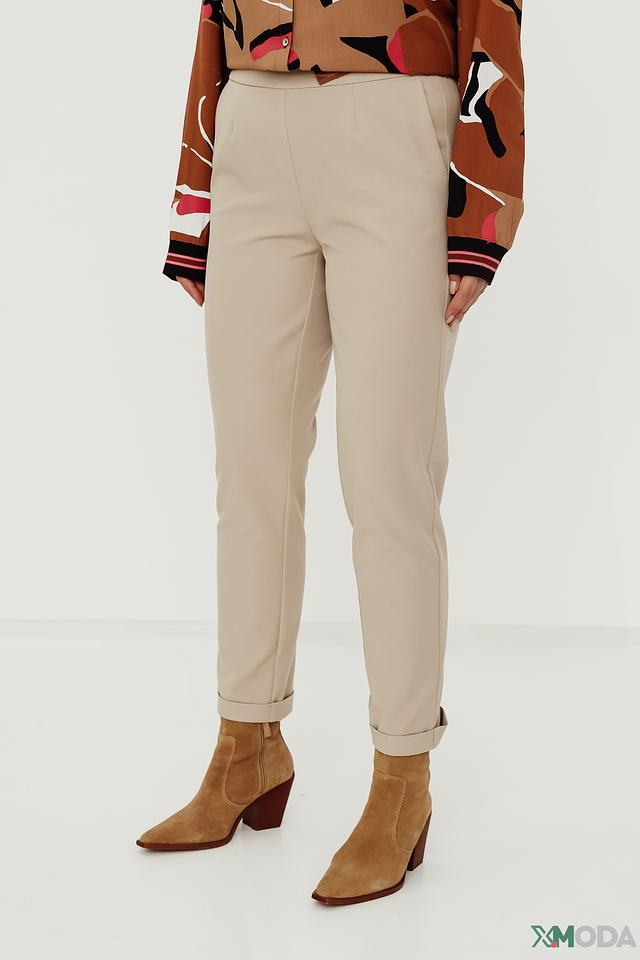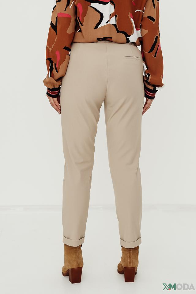 Брюки имеют классический крой с зауженными к низу штанинами, что визуально удлиняет силуэт. Особенности дизайна включают аккуратные складки спереди и прорезные карманы по бокам. Застежка – молния и пуговица.