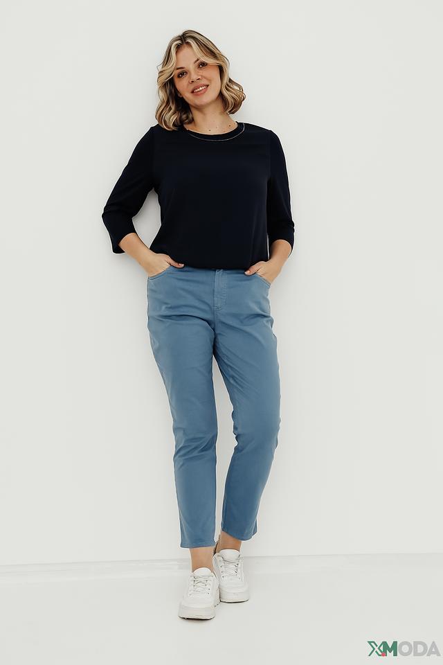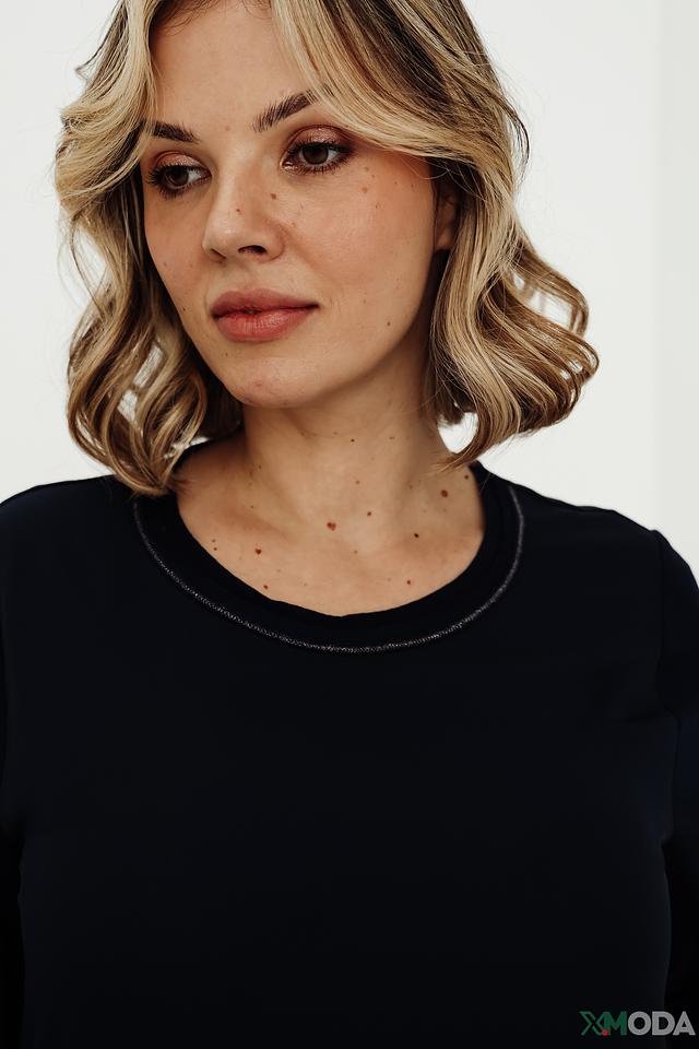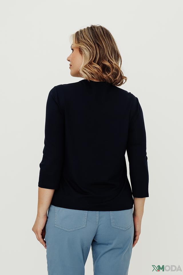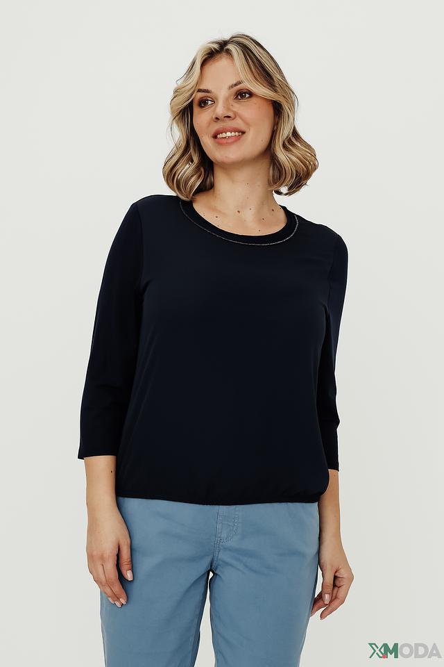 Темно-синяя блуза Frank Walder из мягкой вискозы с добавлением эластана. Модель имеет округлый вырез горловины, отделанный тонкой тесьмой, и рукава 3/4. Идеально подойдет для создания повседневных образов. Состав: вискоза 93%, эластан 7%