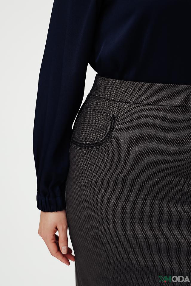 Юбка выполнена из смеси полиэстера, вискозы и эластана, что обеспечивает комфорт в носке, хорошую посадку и устойчивость к сминанию. Ткань имеет приятную текстуру и выглядит элегантно.