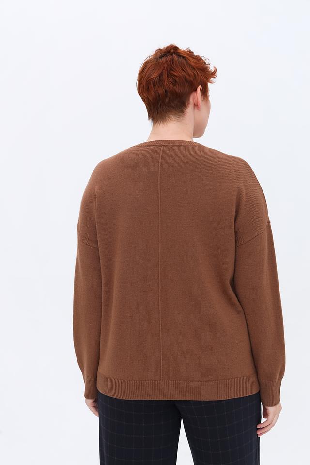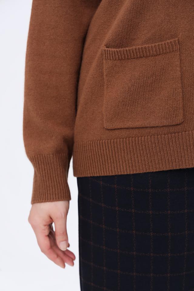 Особенностью этого пуловера являются накладные карманы, которые добавляют функциональности и стиля. Коричневый цвет изделия легко сочетается с другими элементами гардероба, позволяя создавать разнообразные образы. Состав: шерсть 50%, полиамид 30%, модал 20%.