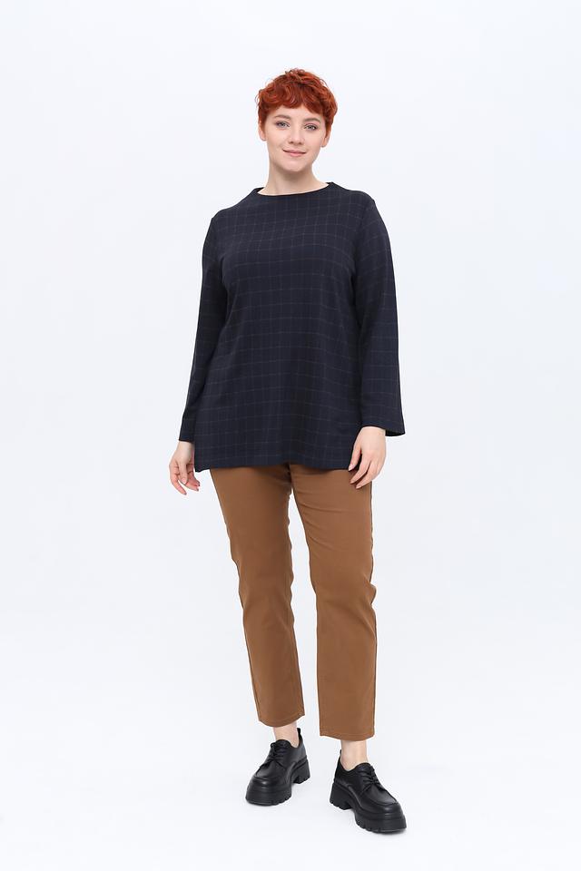 Блуза имеет свободный крой, который не сковывает движений и обеспечивает комфортную посадку по фигуре. Длинные рукава и округлый вырез горловины делают ее универсальной для различных случаев.