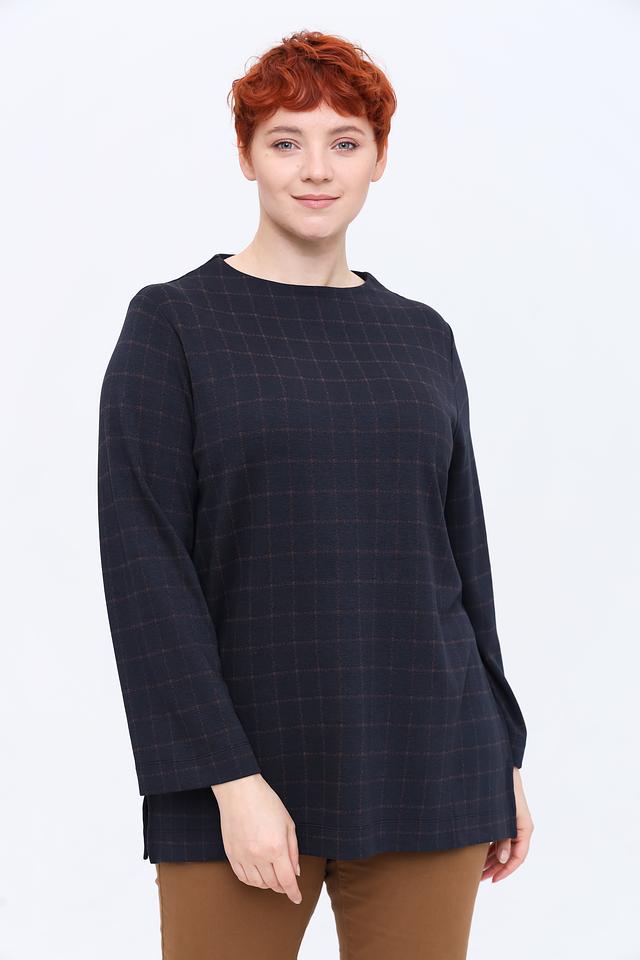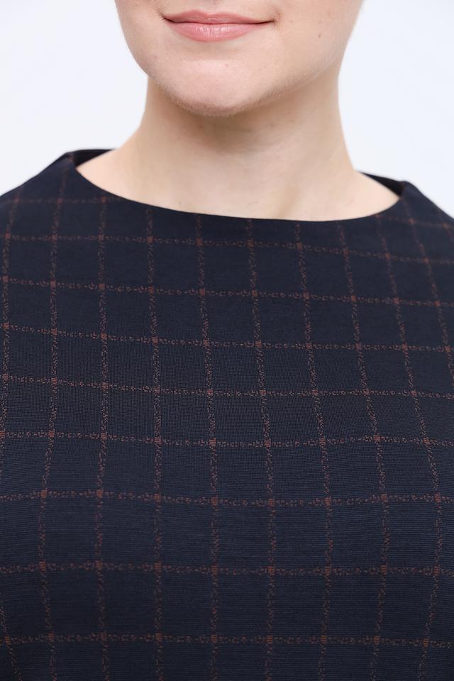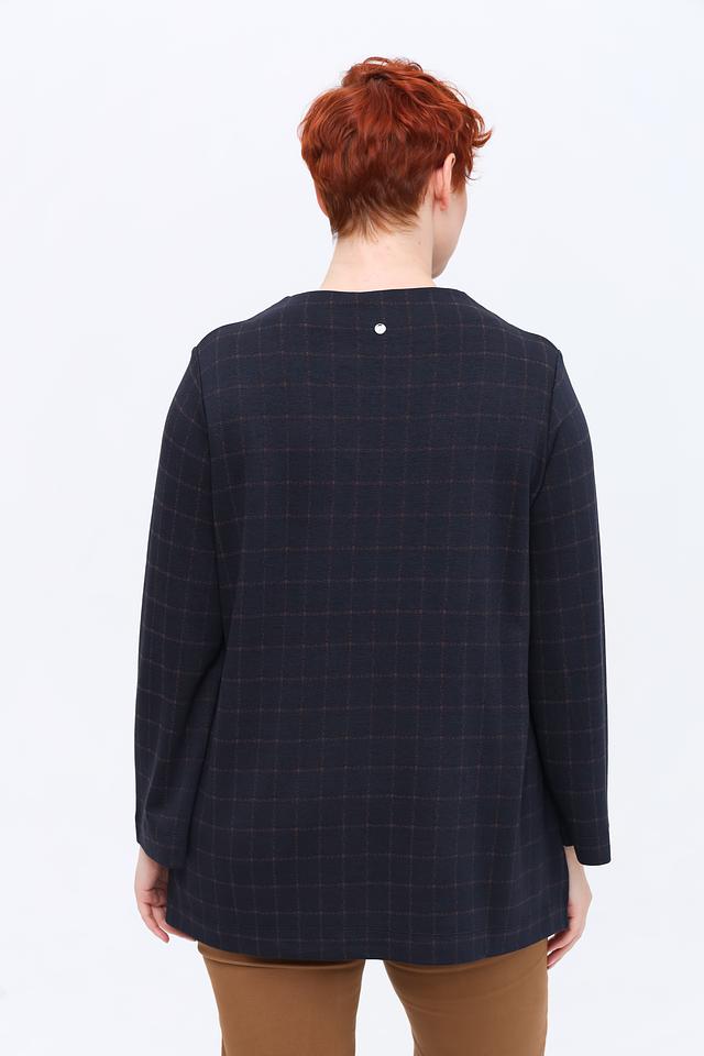 Стильная блуза Frapp темно-синего цвета с клетчатым принтом станет отличным дополнением к вашему гардеробу. Модель выполнена из мягкой и приятной к телу ткани, обеспечивающей комфорт в течение дня. Состав: вискоза 73%, полиэстер 23%, эластан 4%