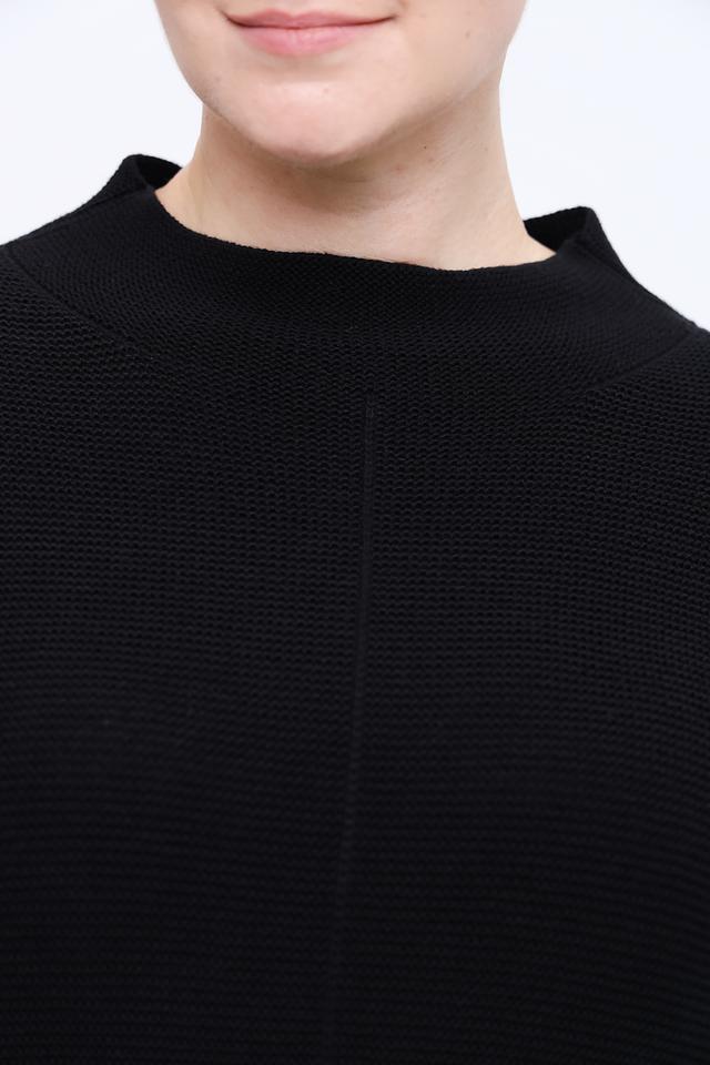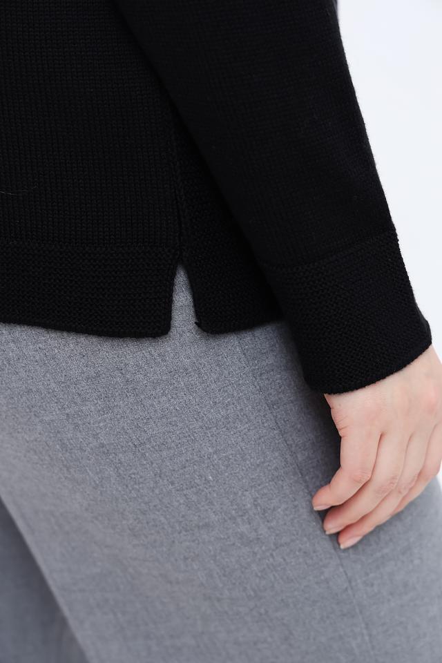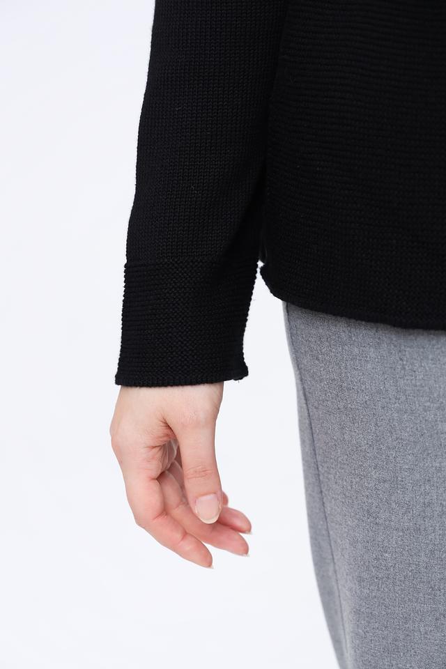 Пуловер имеет прямой крой и вырез горловины, что делает его универсальным для создания различных образов. Текстурная вязка добавляет изделию изысканности и оригинальности.