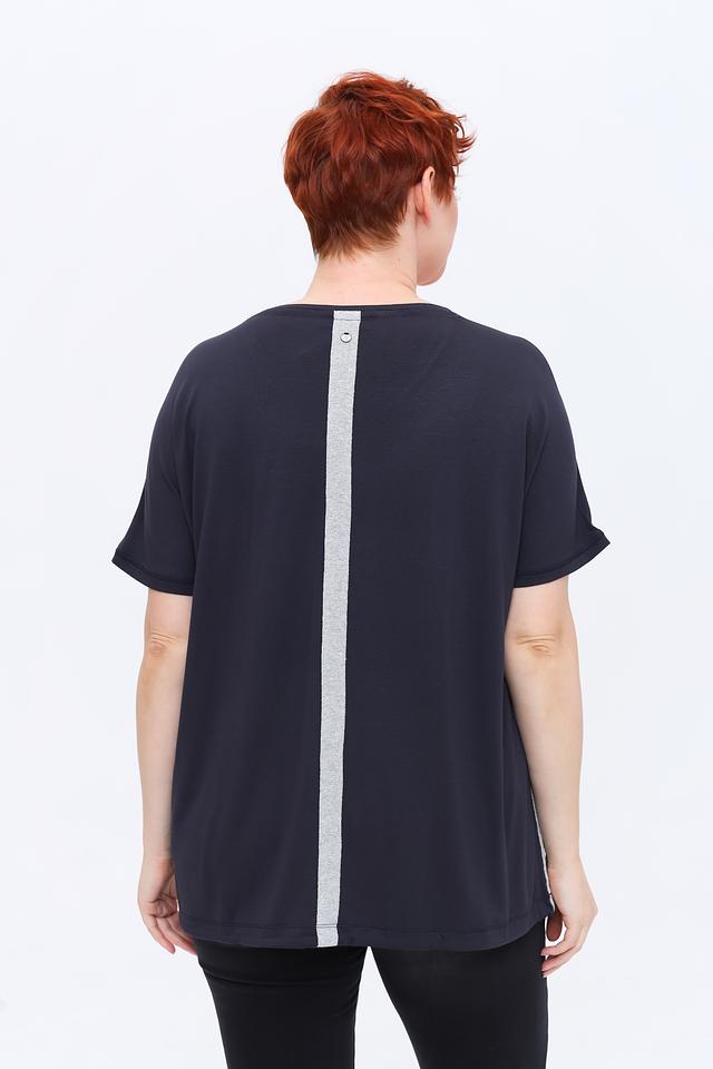 Модель имеет свободный крой, который обеспечивает комфорт в носке. Короткие рукава и округлый вырез горловины делают блузу универсальной и подходящей для различных случаев. Декоративная полоса на спине добавляет изюминку и оригинальность.