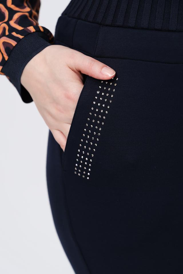 Декоративные элементы в виде небольших страз на карманах придают брюкам изысканность. Данная модель станет отличным дополнением к вашему гардеробу и подойдет для создания как повседневных, так и более элегантных образов.