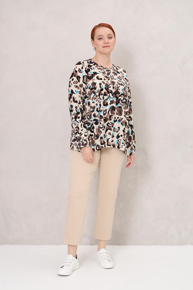 Блуза Frapp бежевого цвета с оригинальным абстрактным принтом станет стильным дополнением к вашему гардеробу. Модель выполнена из мягкой вискозы, обеспечивающей комфорт в носке, и имеет свободный крой. Состав: вискоза 100%