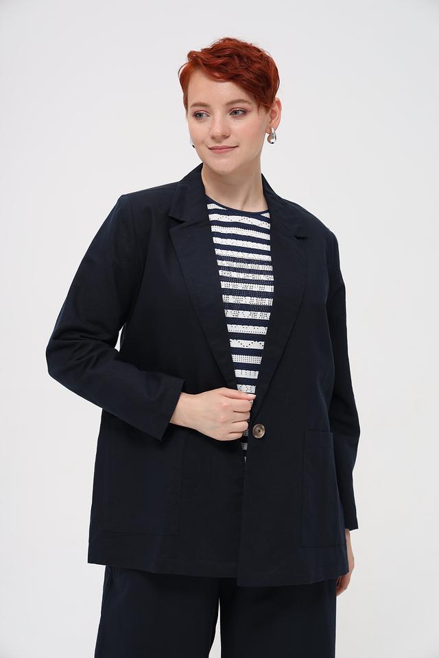 Состав ткани – 55% лен и 45% хлопок, что обеспечивает воздухопроницаемость и комфорт в носке. Этот жакет станет незаменимой вещью в вашем гардеробе в течение всего года.