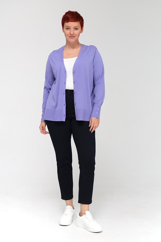 Этот женский жакет от Frapp выполнен в нежном лавандовом цвете и станет прекрасным дополнением к вашему гардеробу. Модель имеет V-образный вырез и застегивается на ряд пуговиц по всей длине.